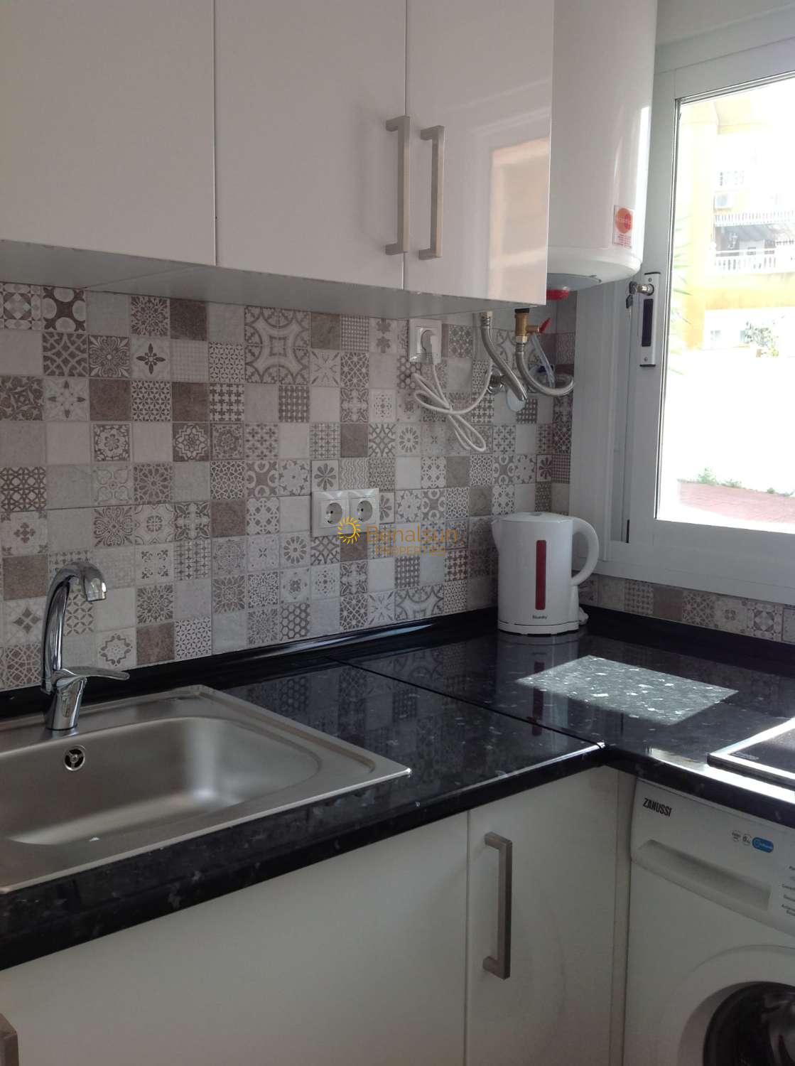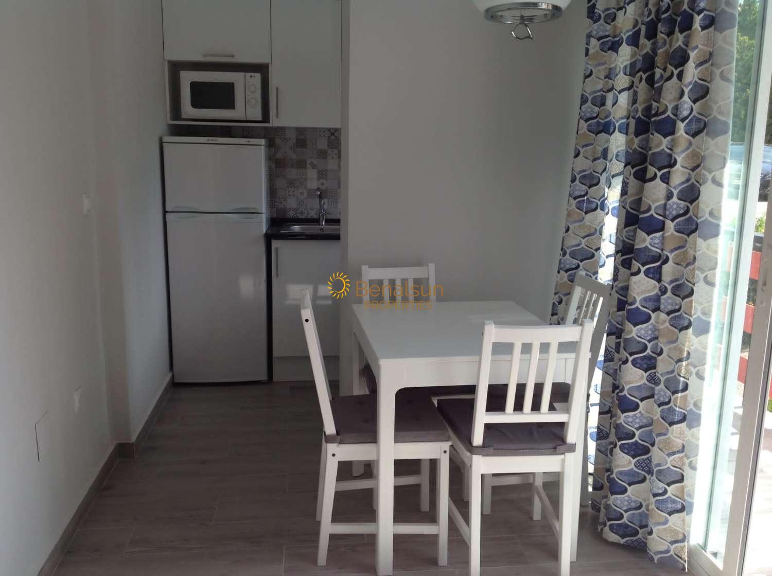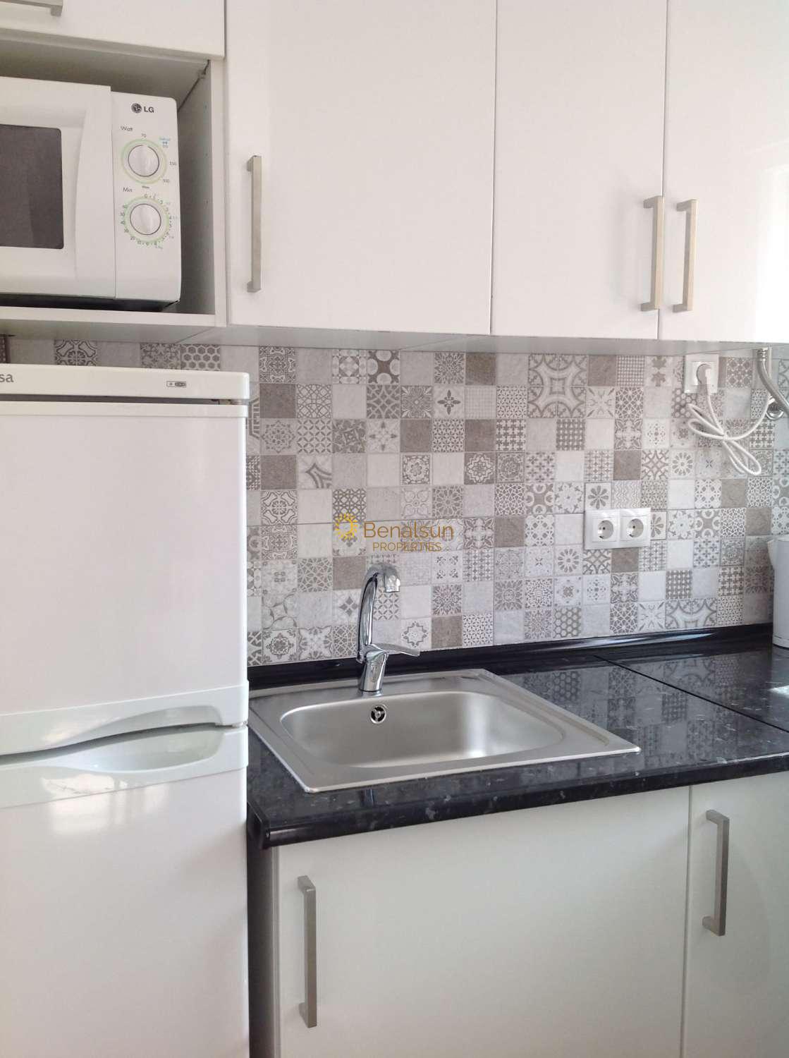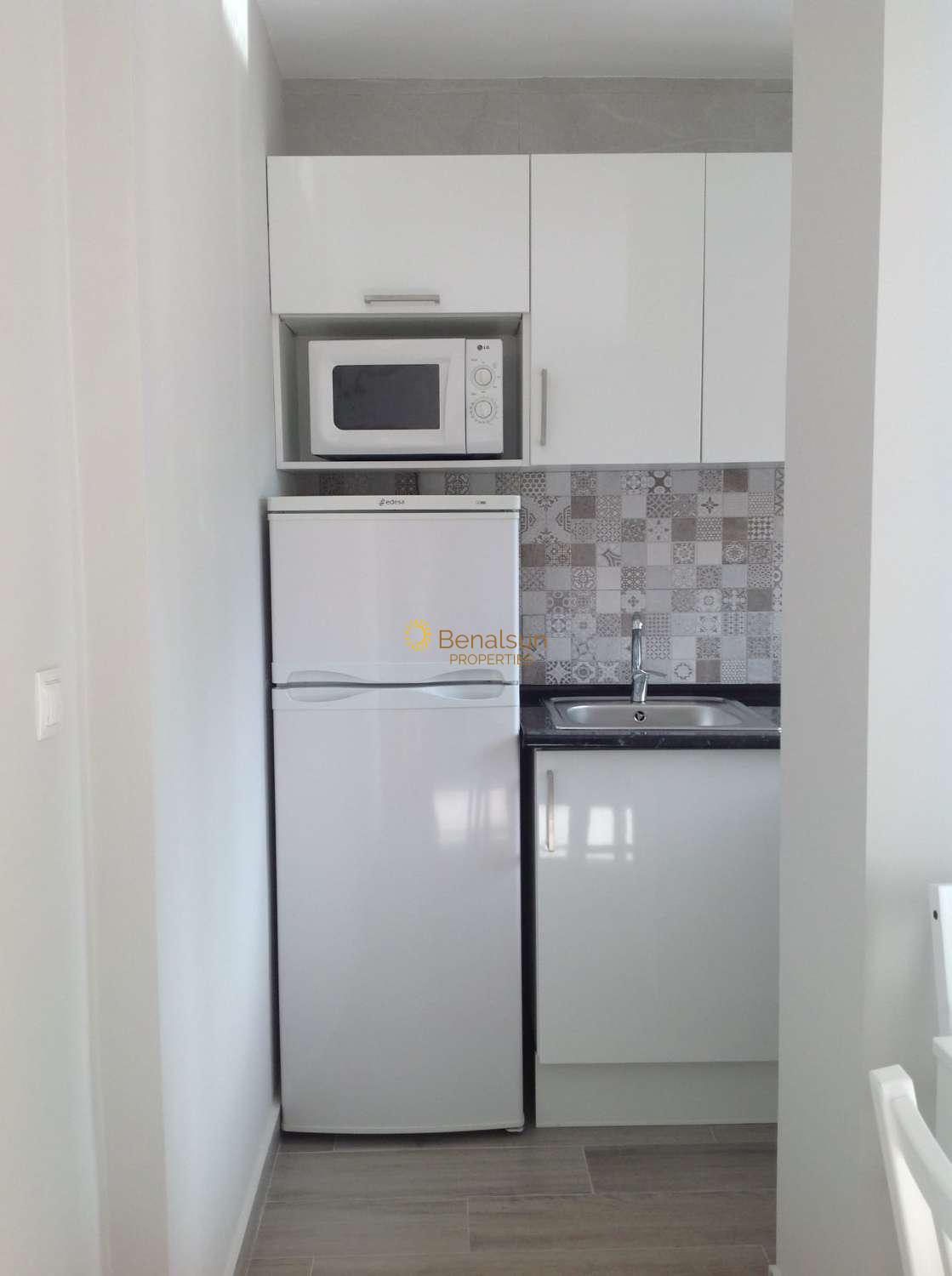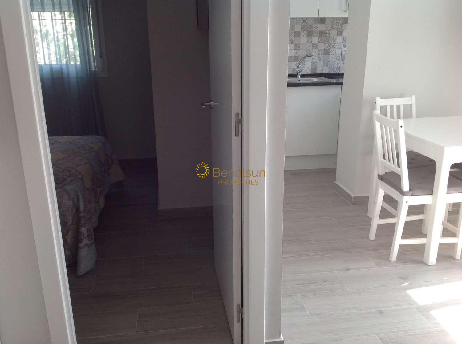 TIL LEJE FRA 1.9.26-15.6.27 FIN LEJLIGHED 100 METER FRA STRANDEN I BENALMADENA, HAR 45 M2 BYGGET, 2. SAL, AIRCONDITION VARM/KOLD, SYDVESTLIG ORIENTERING.