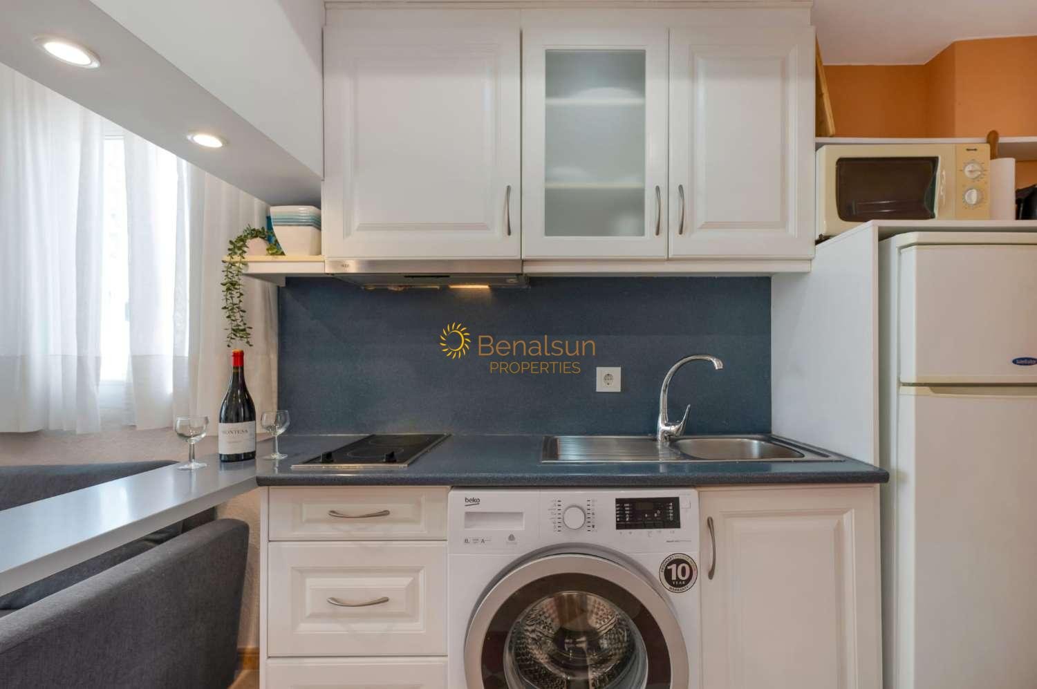 Til leje fra 01/09/2026 til 30/06/2027 en flot etværelses lejlighed i Benalmadena, costa. DEN HAR 40 M2, 2. sal, sydvestvendt, aircondition varm/kold, ingen parkering