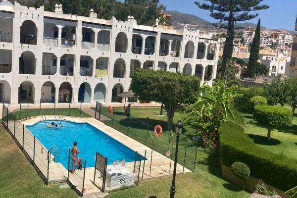 La urbanización ofrece bonitas zonas ajardinadas y piscina con áreas de descanso.