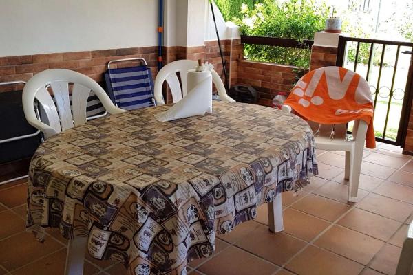 Consta de comedor - salón con sofá, 2 dormitorios, 1 baño, cocina independiente completamente equipada con frigorífico, campana, horno, lavadora. Termo a gas. Hermoso y amplio patio cubierto y descubierto.