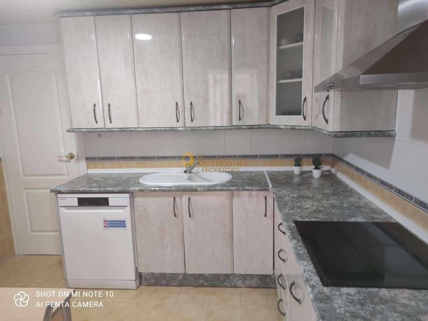 La vivienda consta de salón comedor con sofá cama, cocina independiente equipada con placa vitrocerámica, microondas, frigorífico, horno, lavavajillas , 3 dormitorios , 2 baños, TV , lavadero, terraza , garaje privado subterráneo incluido en el precio.