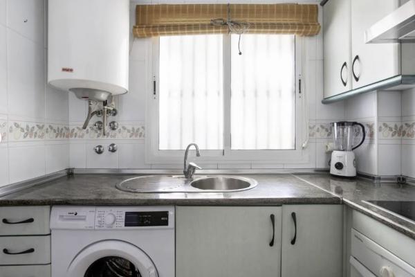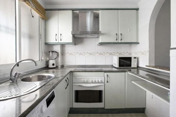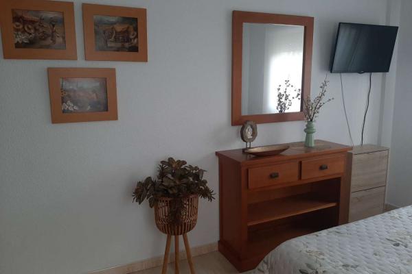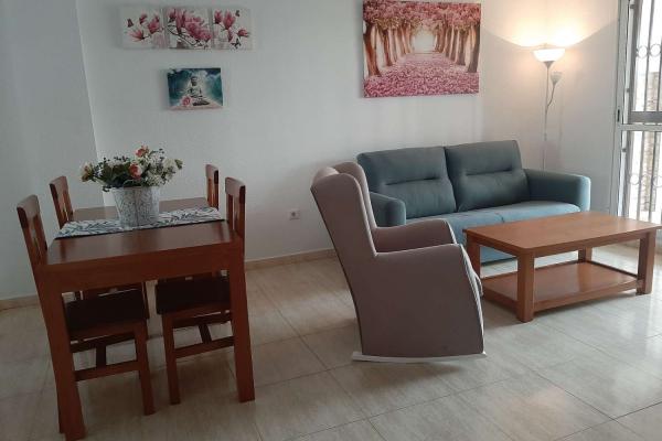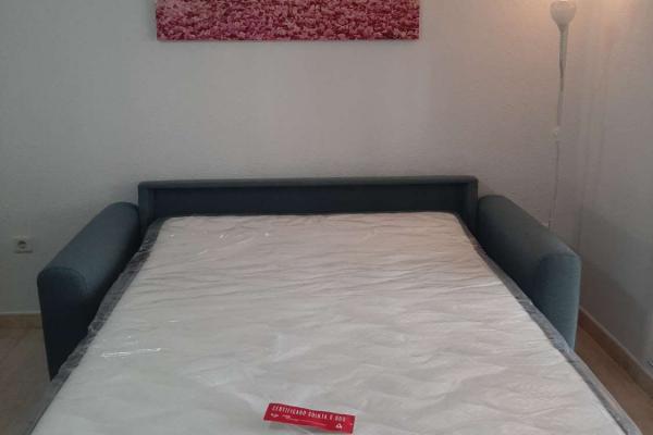 Consta de comedor - salón con sofá, 2 dormitorios, 1 baño, cocina independiente completamente equipada con frigorífico, campana, horno, lavadora. Hermoso y amplia terraza cubierta y descubierta de 20,etros .