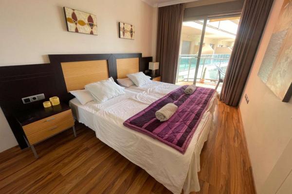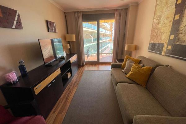 Apartamento amplio y luminoso de 1 dormitorio, 1 baño, salón, cocina americana equipada y gran terraza con preciosas vistas al mar y la montaña en una décima planta en el complejo Arcosur - Pierre Vacance. Apartamento en complejo con recepción 24h, Spa, y gimnasio supermercado en la misma puerta. Cerca de comercios, pistas de pádel/tenis, farmacia, parada de autobús y a un paso de la playa. No se admiten mascotas.