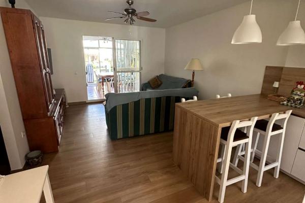 Consta de salón comedor con sofá, cama . 2 dormitorios con armarios empotrados , uno con cama de mstrimonio y el otro dormitorio con 2 camas de 1.05cm 1 baño, con bañera cocina independiente completamente equipada con frigorífico, campana, horno, lavadora. Hermoso y amplia terraza descubierta de uno 20 metros.