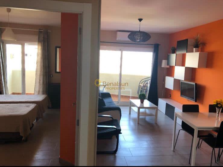 SE ALQUILA DESDE 15/10/26-21/3/27- BONITO APARTAMENTO CON VISTAS AL MAR EN BENALMÁDENATIENE 60M2 1 DORMITORIO , SALON COMEDOR CON COCINA AMERICANA , 1 BAÑO Y TERRAZA . ORIENTACION SUR . SITUADO EN COMPLEJO CON PISCINA CON TOBOGANES , ZONAS AJARDINADAS CON LAGOS , PISCINA INTERIOR , GIMNASIO , SPA , SUPERMERCADO .