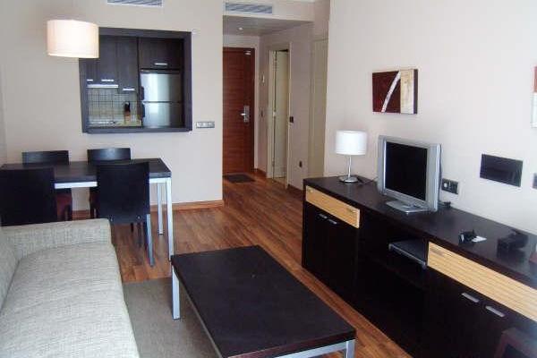 La vivienda consta de 1 dormitorio, 1 baño , salón comedor , cocina independiente equipada y terraza con vistas a la piscina .
