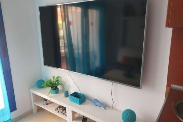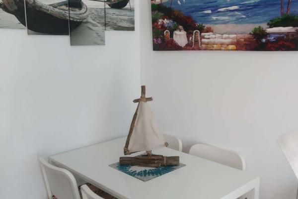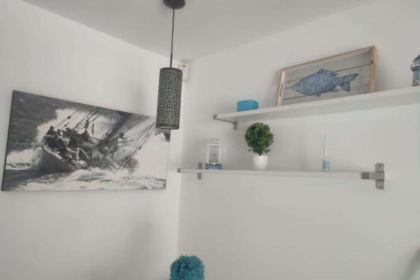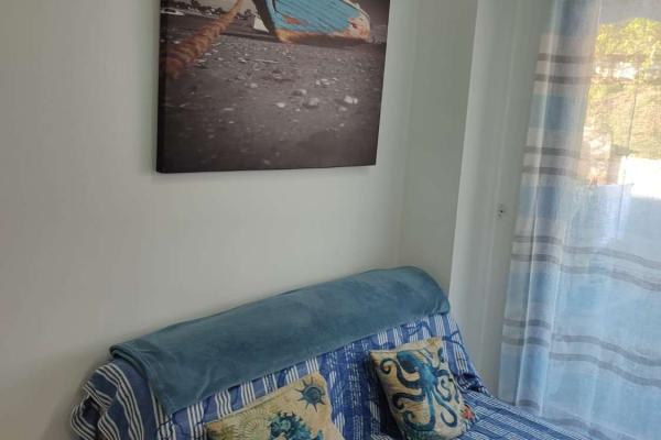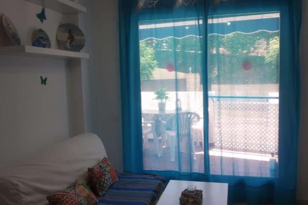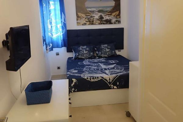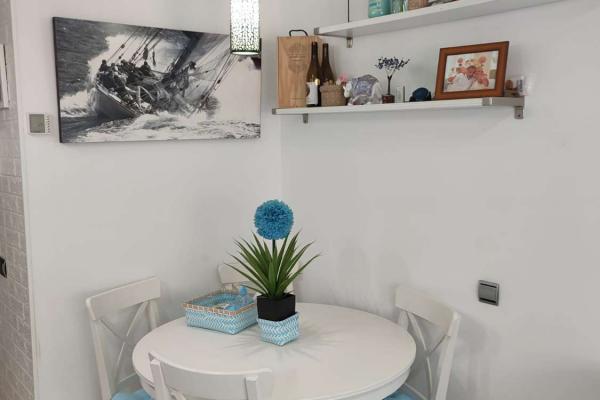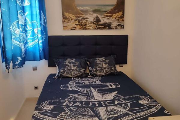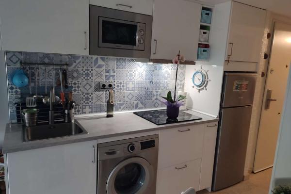 La vivienda consta de 1 dormitorio con armario empotrado , cama de 1,50cm con canapé , salón con cocina americana , 1 baño con plato de ducha y terraza . Se incluye plaza de garaje en el precio . Conjunto con jardines y 2 piscinas , a 150m de la playa , cerca de restaurantes , supermercados , farmacia , parada de bus , centro de salud . Se admite mascota pequeña o mediana (perrito) . Precio: 900€ / mes (wifi y garaje incluido) + 1 mes de fianza