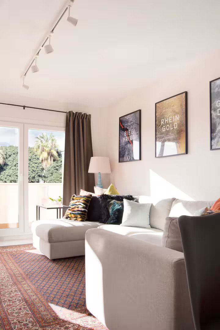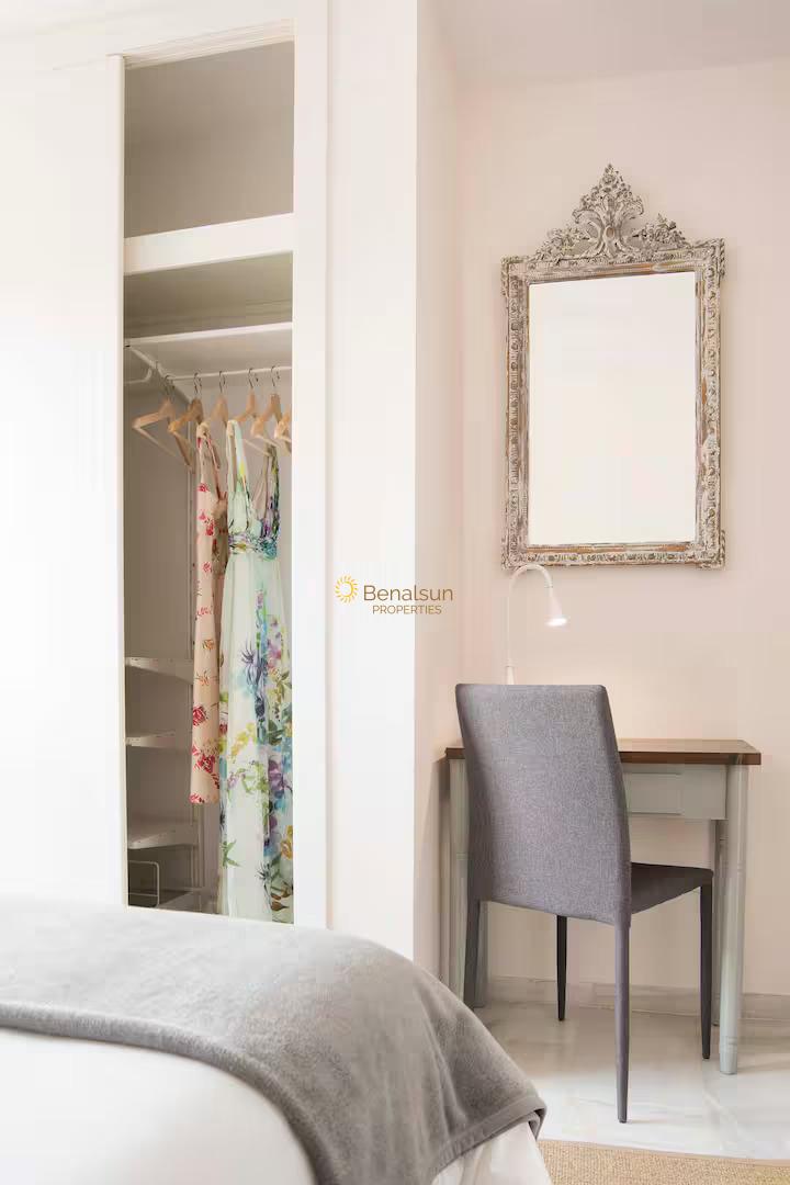 El Parque de la Paloma es el camino más corto para llegar a la costa, y en caso de que prefieras la piscina, puedes quedarte en el jardín comunitario tomando el sol y nadando. El concepto del apartamento se centra en tonos suaves y colores neutros para obtener una experiencia más relajada. El mobiliario es minimalista y cómodo y las habitaciones están especialmente diseñadas para permitir que los huéspedes descansen correctamente. Los baños son modernos, con amplia bañera y ducha y grandes espejos para crear un ambiente agradable para tu cuidado personal.