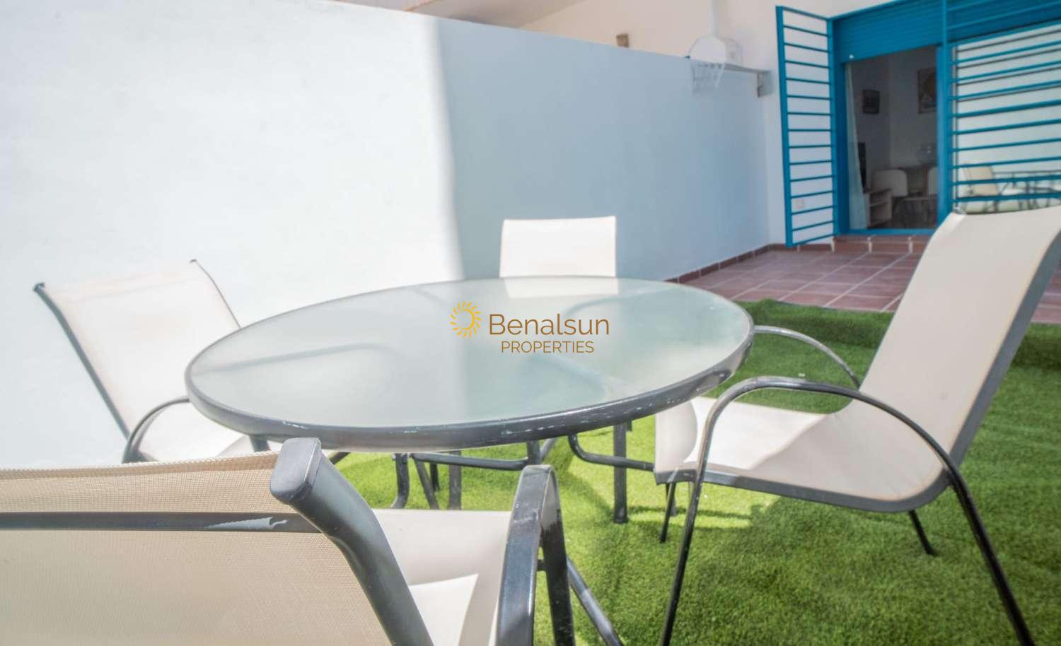 Vivienda de 1 dormitorio con 2 camas, baño, salón con sofá cama, cocina americana equipada al último detalle, terraza con mesa, sillas y tendedero. Calefacción y aire acondicionado. Tiene 45 m2 construidos , planta baja Aire acondicionado frio /calor ,por conductos , orientación suroeste . 1 plaza de garaje incluida en el precio.