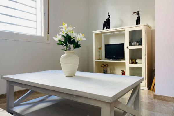 Tiene 48 m2 construidos , orientación este , planta , baja . 1 plaza de garaje / ventiladores de techo en salón y dormitorio (no hace falta aire acondicionado por la orientacion sol de mañana de la vivienda