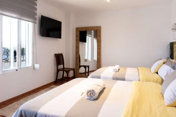 LA VIVIENDA ESTÁ RECIENTEMENTE REFORMADA Y CONSTA DE 2 DORMITORIOS , 2 BAÑOS , SALON COMEDOR CON TV SMART CON TODOS LOS CANALES INTERNACIONALES , COCINA INDEPENDIENTE Y GRAN TERRAZA , PLAZA DE GARAJE INCLUIDA EN EL PRECIO . LOS DORMITORIOS Y EL SALÓN CUENTAN CON TV CON BLUETOOTH Y WIFI . HAY ZONA DE APARCAMIENTO PARA VISITANTES . URBANIZACIÓN PRIVADA CON PISTA DE TENIS Y PISCINA . A 30 METROS DE LA PLAYA Y DEL PASEO MARÍTIMO . TODO CERCA SIN NECESIDAD DE COGER EL COCHE SUPERMERCADOS , PASEO MARITIMO CON RESTAURANTES , PARADA DE BUS , FARMACIA .