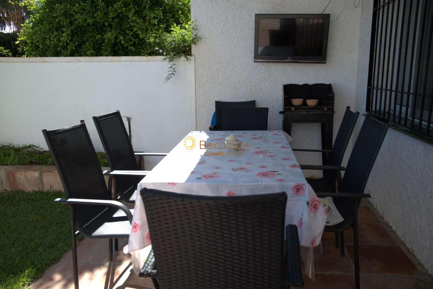 Consta de 3 dormitorios todos con TV y aire acondicionado frio /calor, 2 baños, amplio salon comedor cocina totalmente equipada con lavadora y secadora en patio trasero y jardín de 115 m2 con tumbonas y barbacoa . Garaje cerrado incluido en el precio. Cerca de estación de tren , supermercado , restaurantes , comercios.