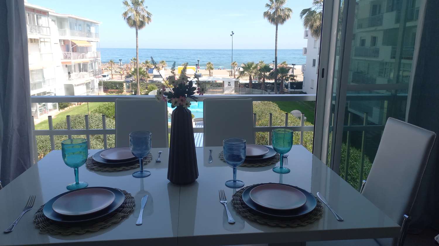 SE ALQUILA DE 1.5.26-23.6.26 BONITO APARTAMENTO CON VISTAS AL MAR EN 1ª LINEA DE PLAYA EN FUENGIROLA
