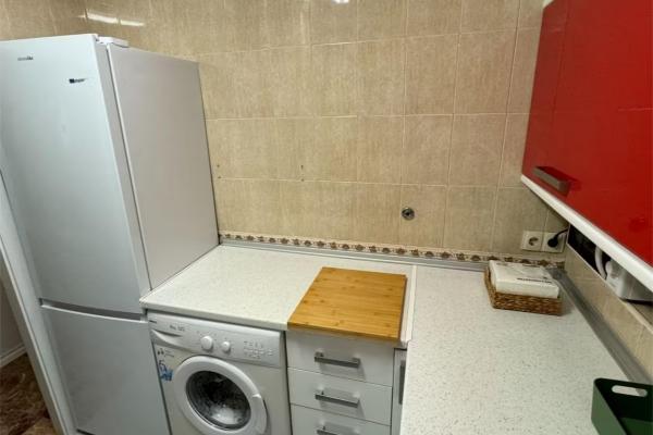 Cocina totalmente equipada: nevera, lavadora, tostadora, cafetera, ollas, sartenes, menaje completo.