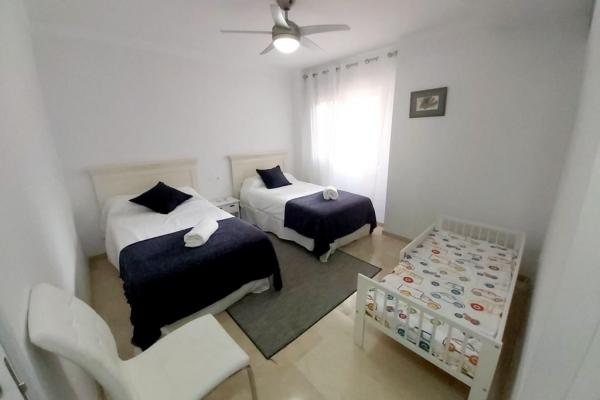 La vivienda consta de 3 dormitorios , 3 baños , gran salón comedor , cocina independiente completamente equipada , amplia terraza y plaza de parking vallado en el edificio (no asignado) . Conjunto con jardín y piscina muy bien cuidados Cerca de todas las facilidades a 30 metros de la playa y del paseo marítimo , comercios , restaurantes , supermercados , cerca de la estación de tren de los Boliches .