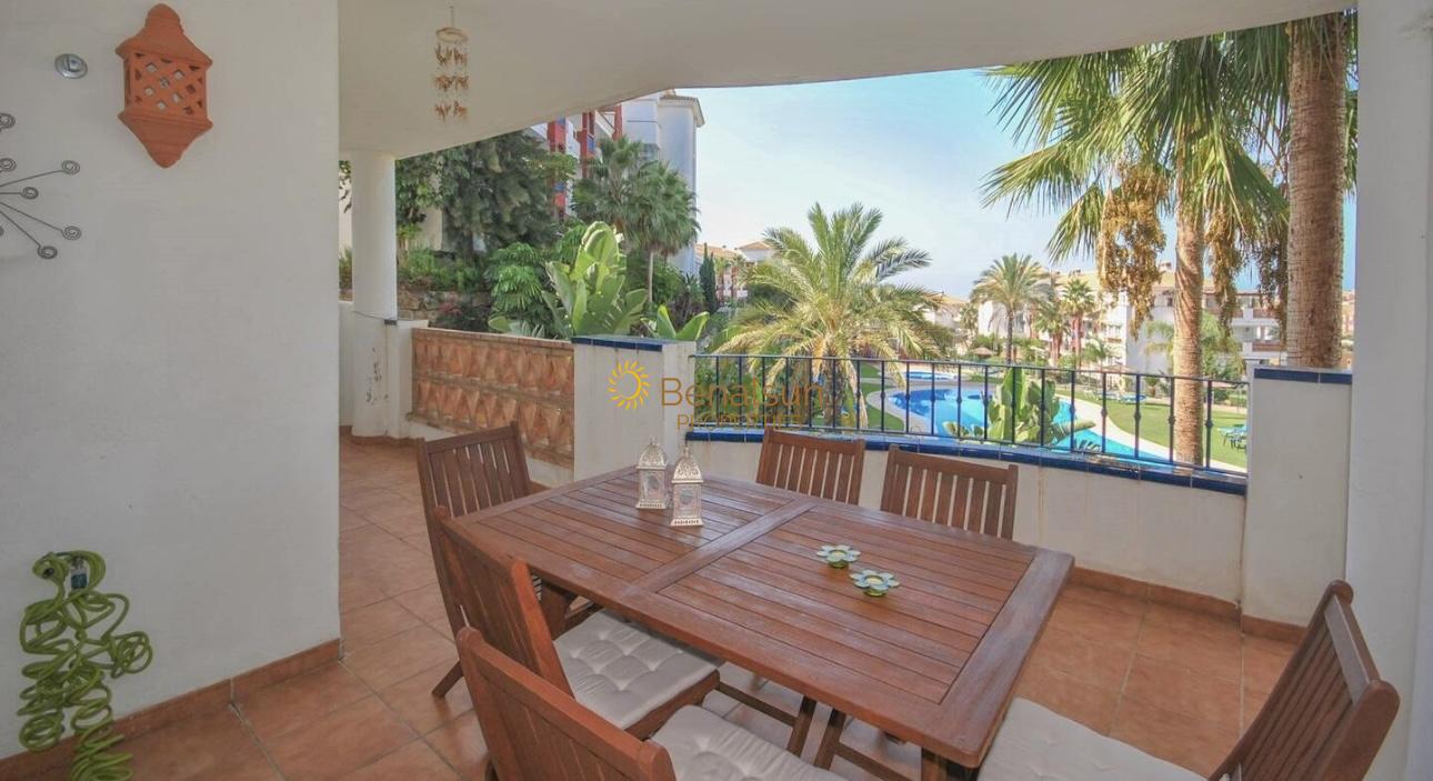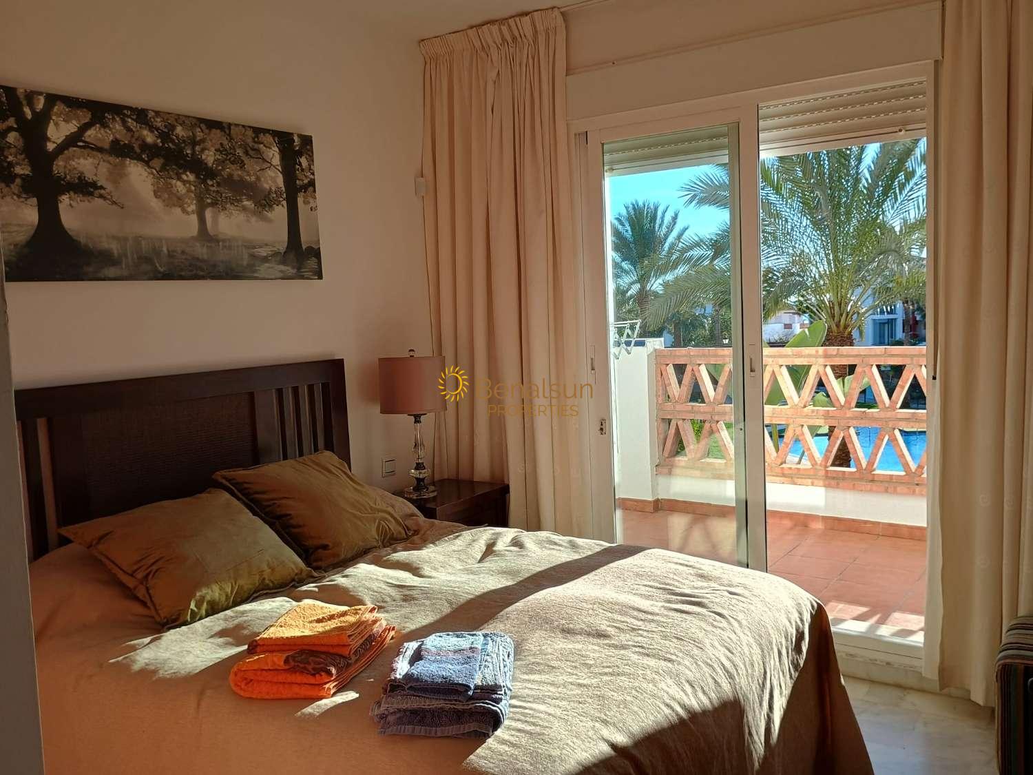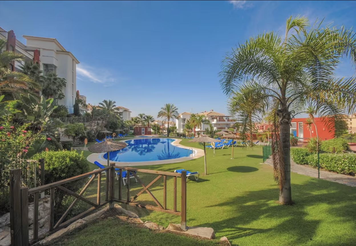 BONITO RESORT DE 600O METROS , RODEADO DE CAMPO DE GOLF ,BIEN CUIDADA , CON JARDIN , POOL BAR , 2 PISCINAS EXTERIORES Y UNA PISCINA INTERIOR CLIMATIZADA GIMNASIO . ,PISTA DE TENIS A 1.5 KM A LA PLAYA, CERCA DE RESTAURANTES , SUPERMERCADOS , FARMACIA .