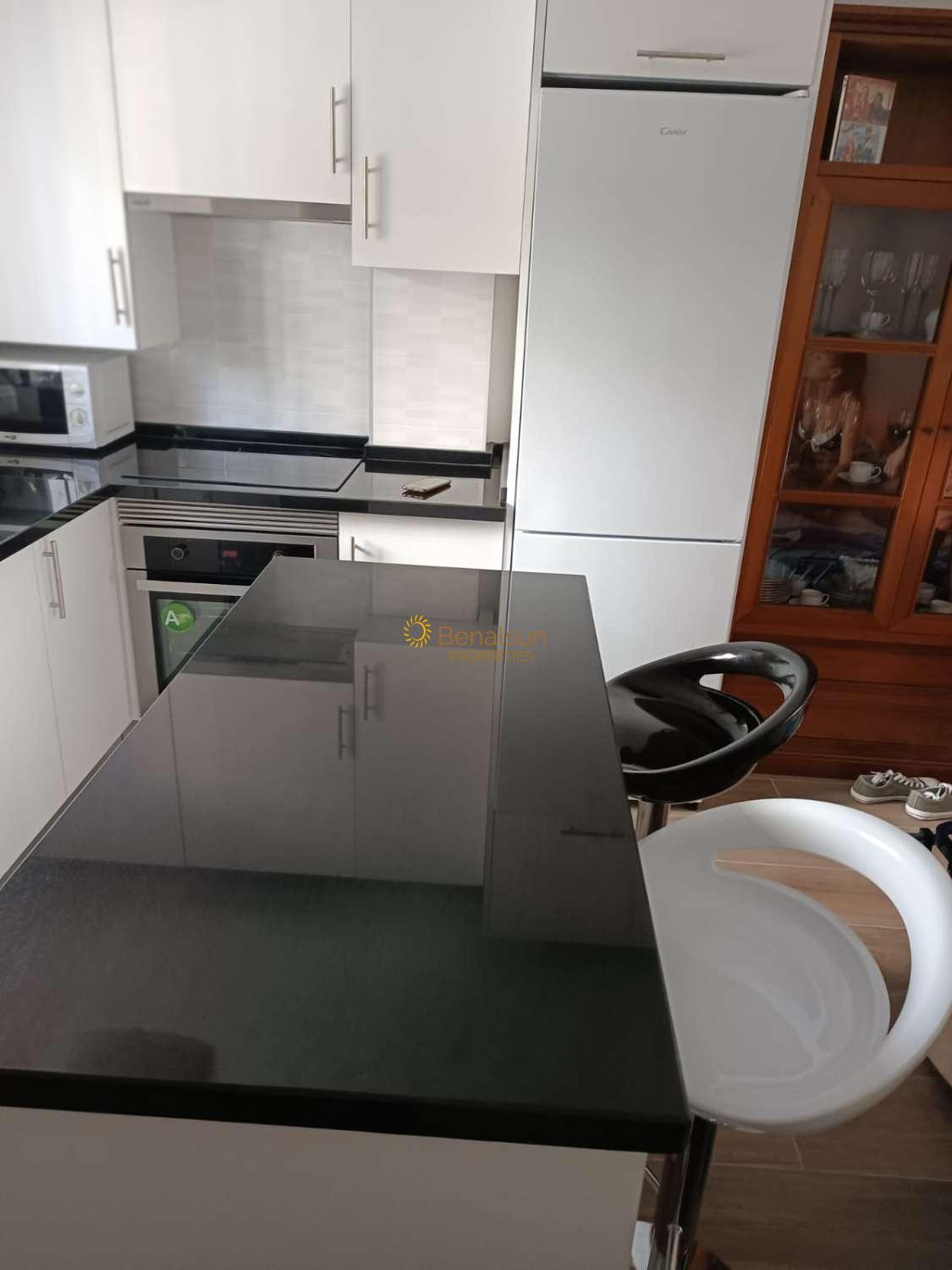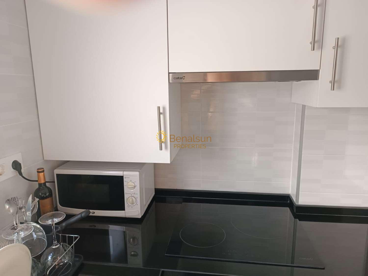 CONSTA DE 1 DORMITORIO , COCINA INDEPENDiENTE, SALON COMEDOR , 1 BAÑO CON DUCHA Y TERRAZA CON VISTAS AL MAR . TRANQUILA URBANIZACIÓN CON JARDINES Y PISCINA Y ZONA DE BARBACOA . CERCA DE TODAS LAS FACILIDADES DE MERCADONA , FARMACIA , RESTAURANTES , A 500 METROS DE LA PLAYA , A 1O MIN ANDANDO DE ARROYO DE LA MIEL . NO SE ADMITE MASCOTA