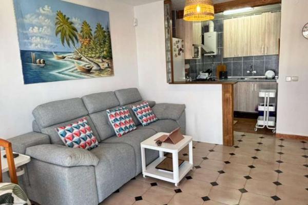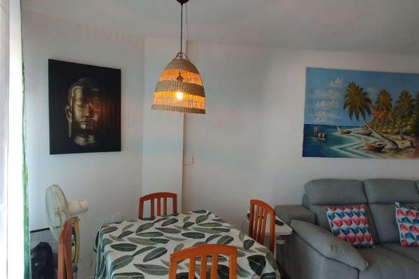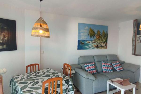 LA VIVIENDA CONSTA DE 2 DORMITORIOS ,1 BAÑO CON PLATO DE DUCHA , SALON COMEDOR CON COCINA AMERICANA Y TERRAZA CON VISTAS A LA PISCINA Y LATERALES AL MAR .
