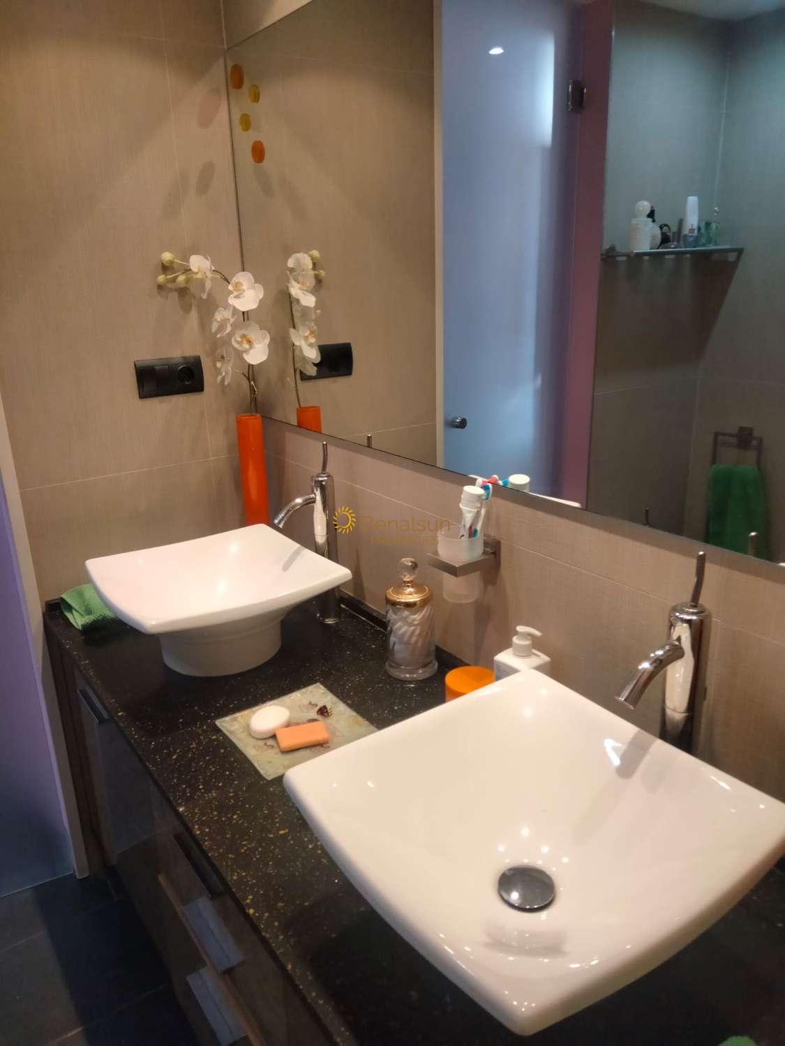 LA VIVIENDA CONSTA DE DOS DORMITORIOS (PERO UNO LA PROPIETARIA LO CIEERRA PARA DEJAR SUS PROPIAS COSAS ) , 2 BAÑOS , COCINA TOTALMENTE EQUIPADA CON LAVAVAJILLAS ABIERTA AL SALON , TERRAZA CON MAGNFICAS VISTAS AL MAR . SE VE EL MAR DESDE TODAS LAS ESTANCIAS