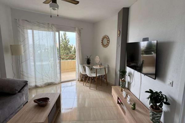 SE ALQUILA DESDE AHORA HASTA 30.6.26 y DESDE 1.9.26-30.6.27 BONITO APARTAMENTO ENTRE TORREMOLINOS Y BENALMADENA75 M2 CONSTRUIDOS , 4ª PLANTA, SUROESTE , GARAJE COMUNITARIO