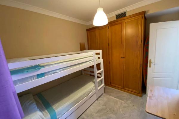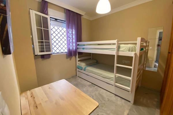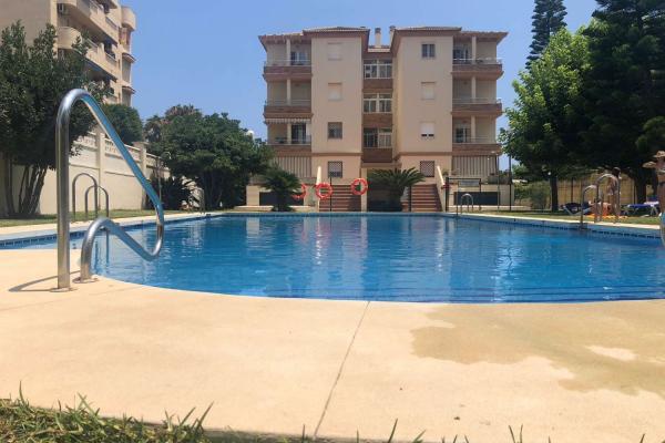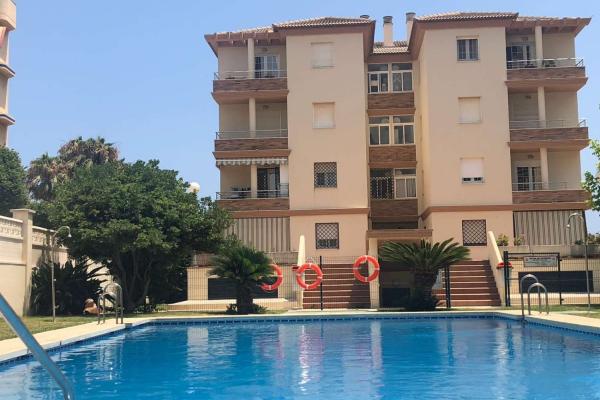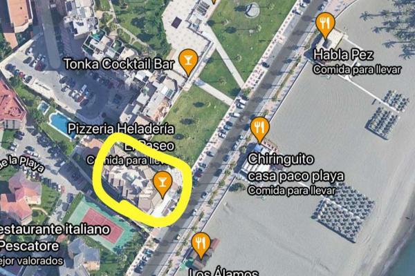 Urbanización con bloque de 4 plantas con jardín y piscina . Cerca de la estación de tren de cercanías Los Álamos , de restaurantes , supermercado , paseo marítimo, playa en frente . Se admite mascota pequeña y educada.