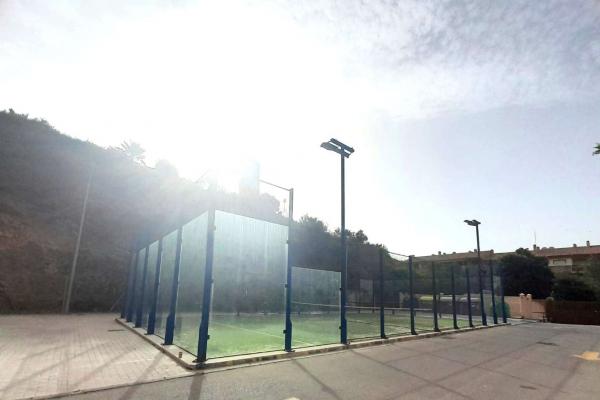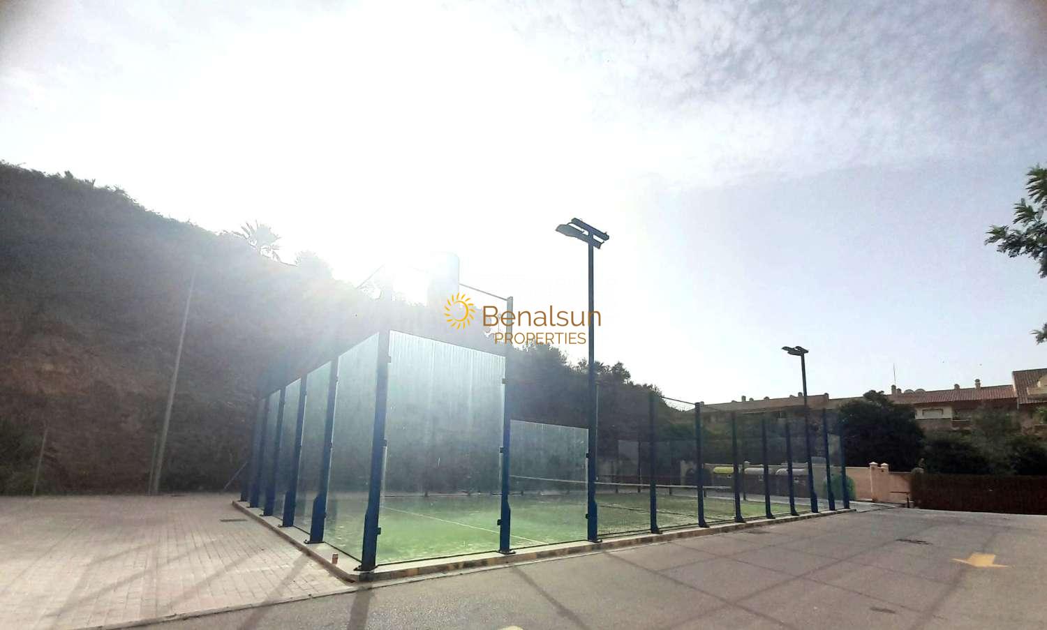 Dentro : 2 piscinas de adultos con preciosas vistas al mar ( una de ellas de agua salada ) + piscina de niños , pool bar , pista de pádel , vigilancia ), ascensor desde piscina a la calle para mayor comodidad de ir a la playa .
