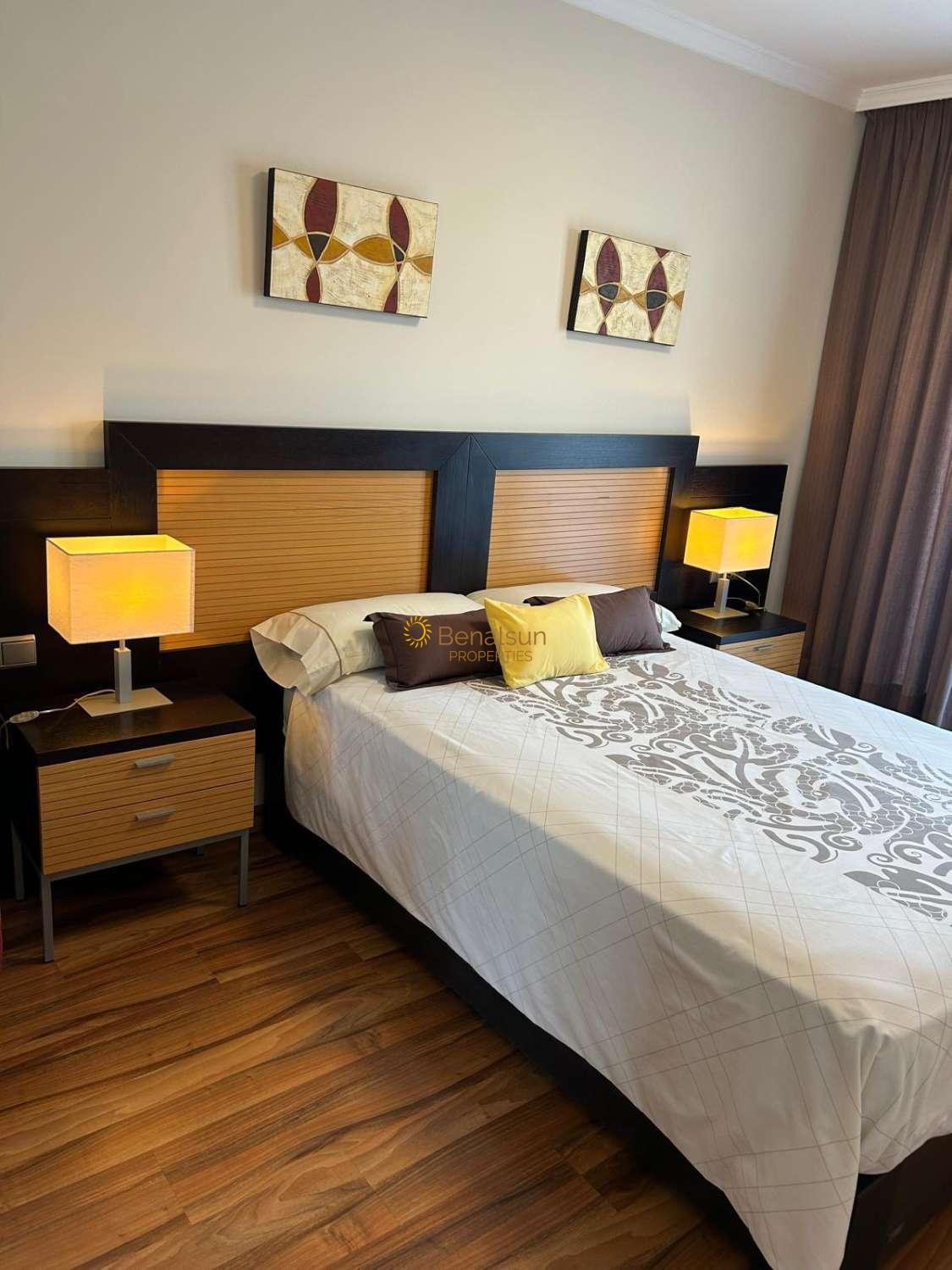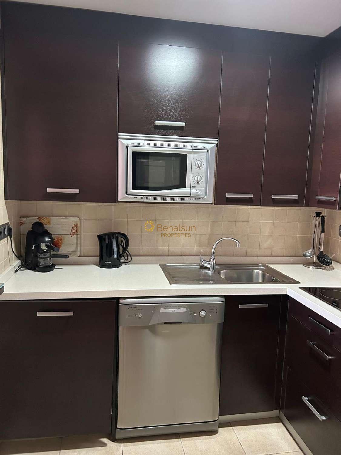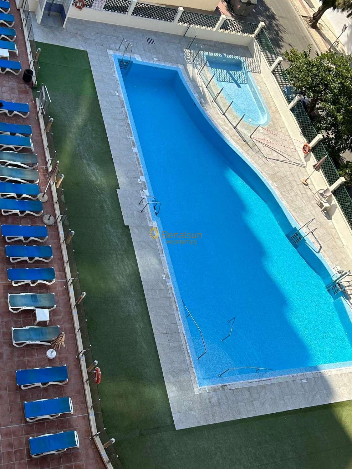 SE ALQUILA DESDE 17/03/2026 - 30/06/2026 y DE 1.10.26-20.12.26 y DE 16.1.27-30.6.27 PRECIOSO APARTAMENTO CON VISTAS AL MAR EN BENALMADENA COSTALA VIVIENDA CONSTA DE SALON COMEDOR , 1 DORMITORIO , 1 BAÑO , COCINA AMERICANA EQUIPADA , AMPLIA TERRAZA , SITUADO EN UNA 6ª PLANTA , ORIENTACION OESTE , MUY LUMINOSO INCLUYE WIFI EN EL PRECIO . POSIBILIDAD DE GARAJE PRECIO APARTE .RECEPCION , PISCINA , RESTAURANTE , SUPERMERCADO JUSTO ABAJO Y SPA . A 90 METROS DE LA PLAYA Y CERCA DE AVENIDA DE LAS PALMERAS A POCOS METROS ANDANDO ENCONTRARÁS SUPERMERCADOS , FARMACIA , CLUB DE LAS RAQUETAS , RESTAURANTES Y COMERCIOS VARIOS .