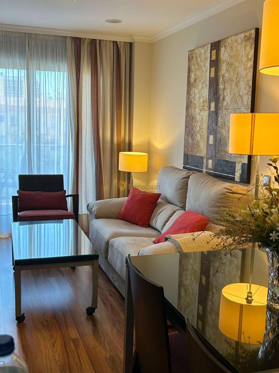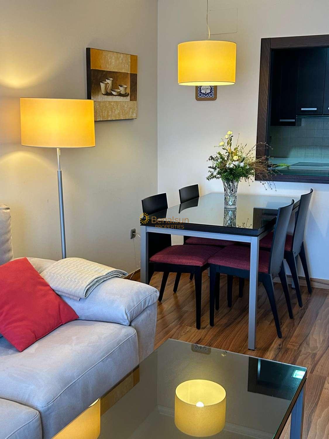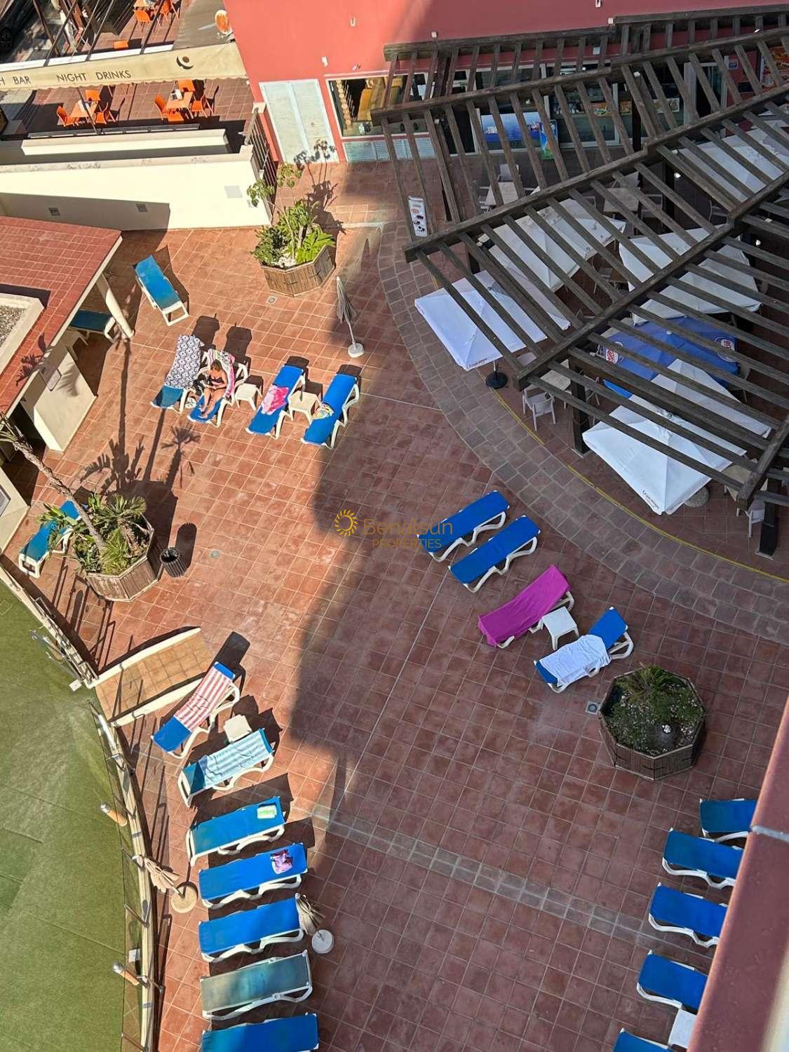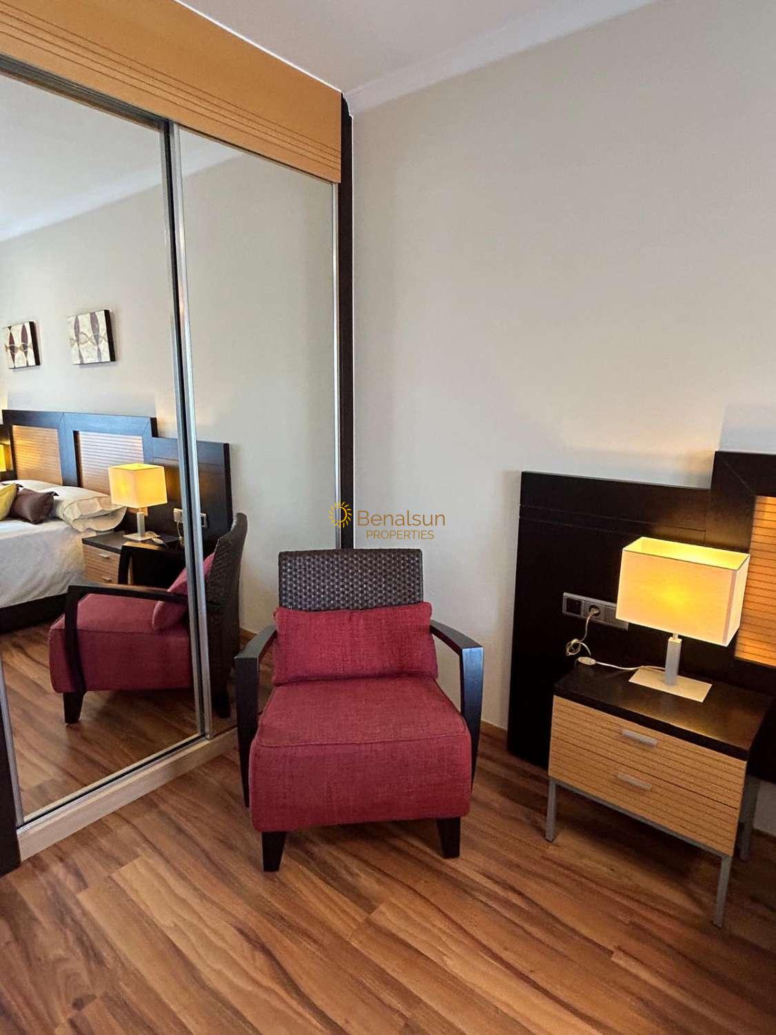 SE ALQUILA DESDE 17/03/2026 - 30/06/2026 y DE 1.10.26-20.12.26 y DE 16.1.27-30.6.27 PRECIOSO APARTAMENTO CON VISTAS AL MAR EN BENALMADENA COSTALA VIVIENDA CONSTA DE SALON COMEDOR , 1 DORMITORIO , 1 BAÑO , COCINA AMERICANA EQUIPADA , AMPLIA TERRAZA , SITUADO EN UNA 6ª PLANTA , ORIENTACION OESTE , MUY LUMINOSO INCLUYE WIFI EN EL PRECIO . POSIBILIDAD DE GARAJE PRECIO APARTE .RECEPCION , PISCINA , RESTAURANTE , SUPERMERCADO JUSTO ABAJO Y SPA . A 90 METROS DE LA PLAYA Y CERCA DE AVENIDA DE LAS PALMERAS A POCOS METROS ANDANDO ENCONTRARÁS SUPERMERCADOS , FARMACIA , CLUB DE LAS RAQUETAS , RESTAURANTES Y COMERCIOS VARIOS .