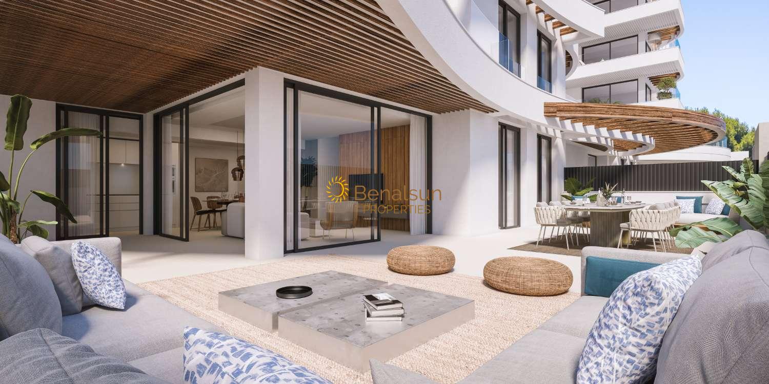 Viviendas exclusivas en un conjunto residencial de lujo de 33 apartamentos, de 2 dormitorios con acabados de máxima calidad, espacios diáfanos y luminosos con amplias terrazas y jardines privados. Sistema de domótica con conectividad a dispositivos móviles. Control de iluminación, sistema climatización, suelo radiante, apertura y cierre de persianas. Aerotermia integrada en el sistema de agua caliente sanitaria y en la producción del suelo radiante. Electrodomésticos en cocina Marca Siemens o similar. Apartamentos bajos y áticos con vistas espectaculares al mar. Con plazas de garaje y trasteros. Desde la tercera planta, todas las viviendas cuentan con vistas al mar, laterales o frontales. Con plazas de garaje y trasteros.