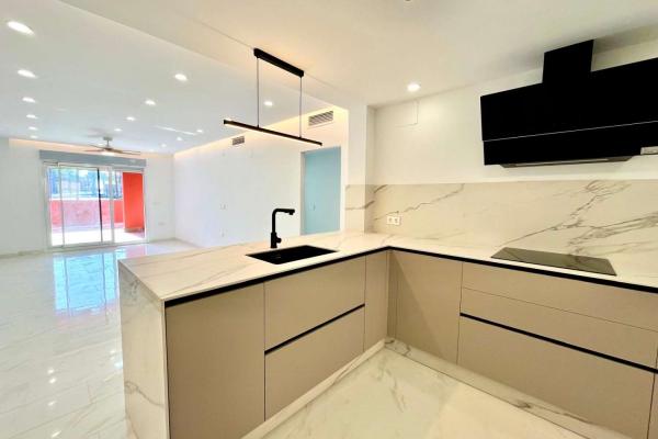 LA VIVIENDA CONSTA DE 2 DORMITORIOS CON ARMARIOS EMPOTRADOS , 2 BAÑOS UNO DE ELLOS EN SUITE AMBOS CON PLATO DE DUCHA , AMPLIO SALON COMEDOR , COCINA ABIERTA AL SALON CON ELECTRODOMESTICOS BALAY Y CAMPANA EXTRACTORA DE SAMSUNG . LAVADERO TOTALMENTE REFORMADO POR UN ARQUITECTO CON CALIDADES DE 1ª. AEROTERMIA (sistema de climatización que utiliza la energía del aire exterior para proporcionar calefacción, refrigeración y agua caliente sanitaria (ACS) en edificios) , Y AMPLIA TERRAZA CON BONITAS VISTAS AL MAR Y A LA PSICINA . CUENTA CON GARAJE CERRADO CON ZONA DE TRASTERO