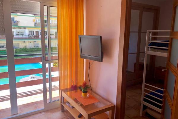 SITUADO EN UNA URBANIZACIÓN PRIVADA CON GRAN JARDIN Y 3 PISCINAS Y ZONA INFANTIL TIENE RESTAURANTE Y SUPERMERCADO EN EL MISMO CONJUNTO . CERCA DE COMERCIOS , SUPERMERCADOS , PASEO MARITIMO , PLAYA FARMACIA ETC . LA VIVIENDA ESTÁ EN UNA 1ªPLANTA Y CONSTA DE SALON COMEDOR , 1 BAÑO , 1 DORMITORIO Y COCINA EQUIPADA Y TERRAZA CON VISTAS A LA PISCINA .