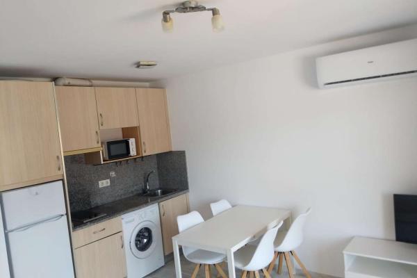 LA VIVIENDA CONSTA DE 1 DORMITORIO CON AMRARIO EMPOTRADO , BAÑO CON DUCHA , SALON COMEDOR CON COCINA AMERICANA Y TERRAZA CON VISTAS A LA PISCINA . MUY LUMINOSO