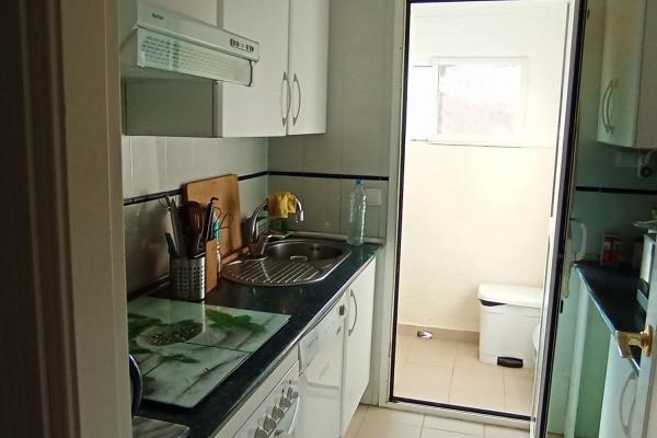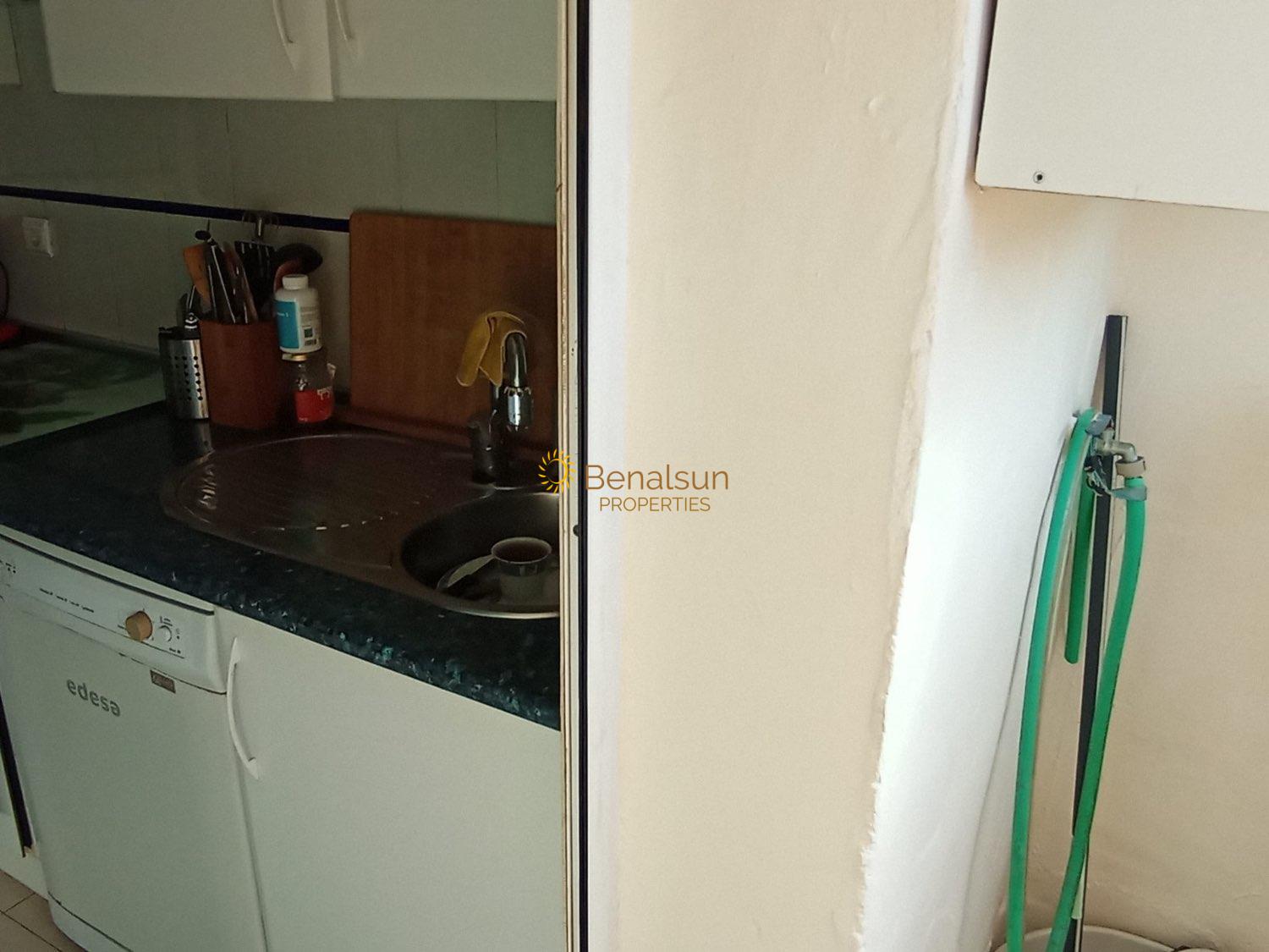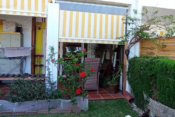 Urbanización con jardín y piscina con vistas al mar . La plaza de aparcamiento está a5 metros del portal. Zona tranquila y con centro comercial a 1 km