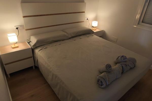 Dormitorio principal con cama de matrimonio abajo , 2 dormitorios uno con cama doble y otra con 2 camas lieras en planta alta , pequeña sala de estar en planta alta -