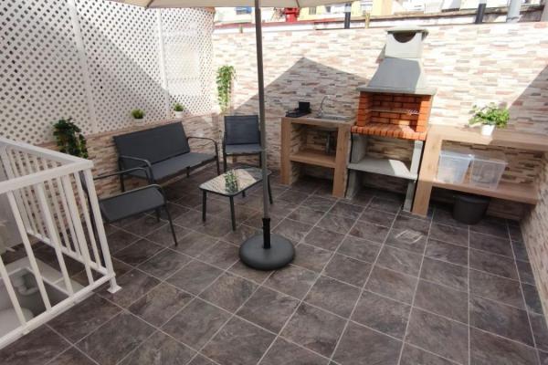 La vivienda consta de 3 dormitorios con armarios empotrados , 1 baño , salón comedor , cocina equipada y terraza de 20 metros con zona de barbacoa