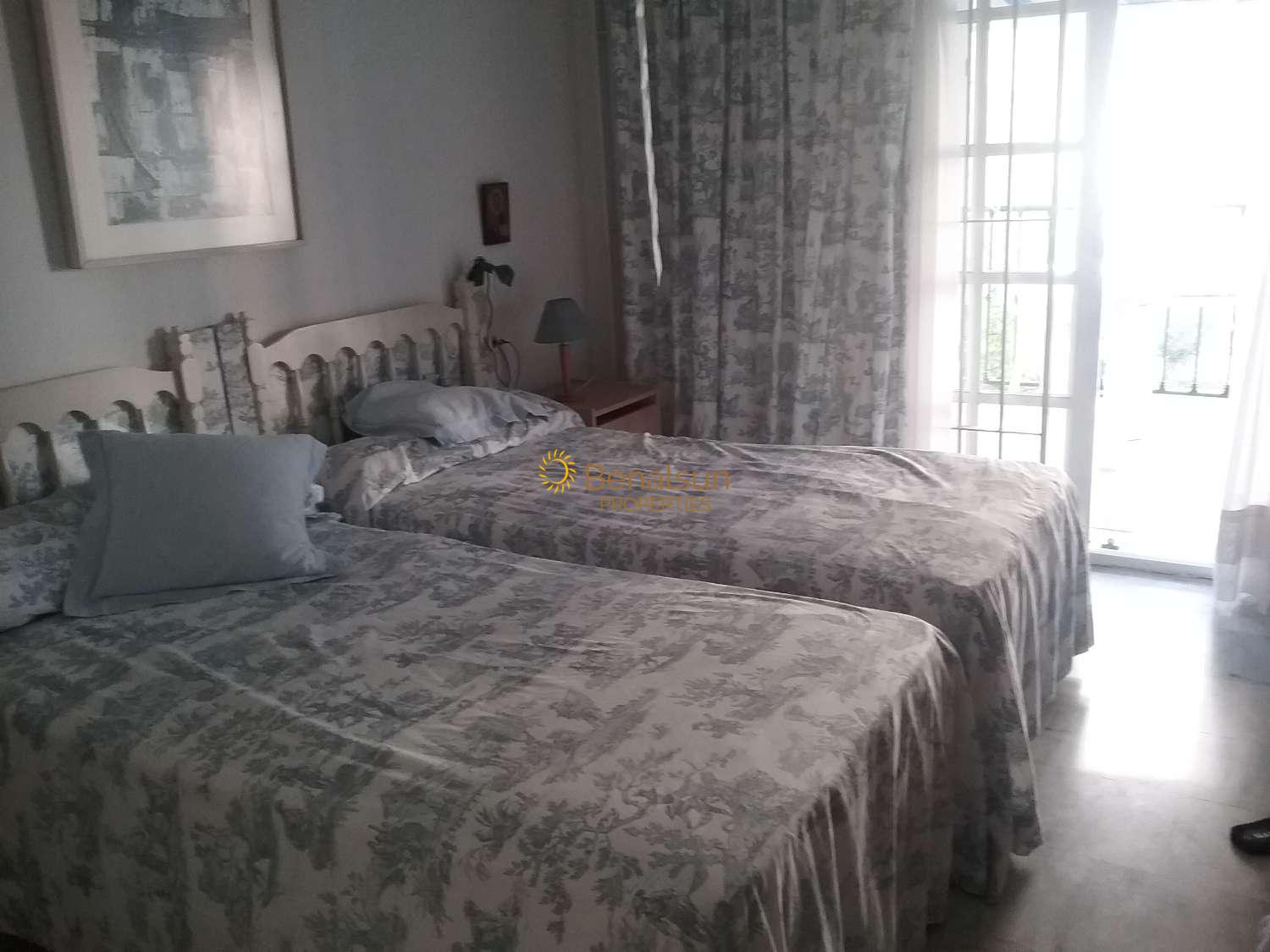Vivienda unifamiliar adosada, con tres plantas, y piscina comunitaria, situada en una zona tranquila de Los Boliches, pero a la vez cerca de comercios, restaurantes, farmacia, locales de ocio, y mercadillo de los martes. Está a un paseo de tan sólo 8 MINUTOS A LA PLAYA!! A un paseo de 15 minutos a la estación de cercanías que conecta con Aeropuerto y estación de RENFE Málaga (María Zambrano).