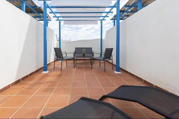 Planta superior solárium muy acogedor con sol todo el día y barbacoa .