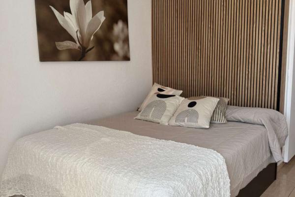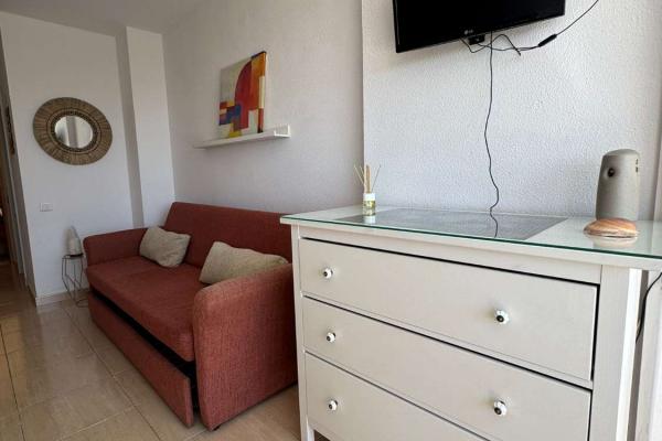LA VIVIENDA CONSTA DE SALON /DORMITORIO CON CAMA DE MATRIMONIO Y SOFA CAMA , 1 BAÑO CON PLATO DE DUCHA , Y TERRAZA INCORPORADA AL SALON PERO CON GRANDES VENTANALES QUE SE PUEDEN ABRIR .