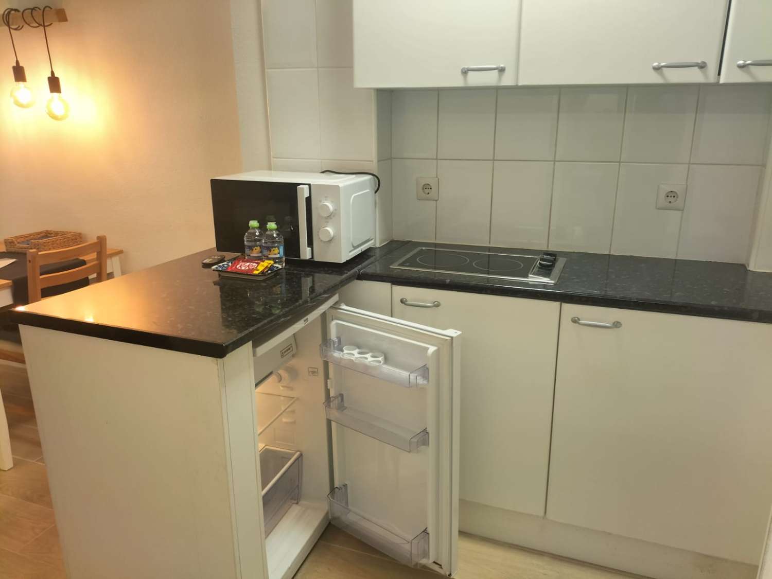 La vivienda consta de salón comedor con sofá, cocina americana equipada con placa vitrocerámica, microondas , cafetera , 1 baño, TV pantalla plana , terraza con vistas al mar laterales.