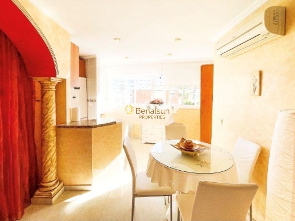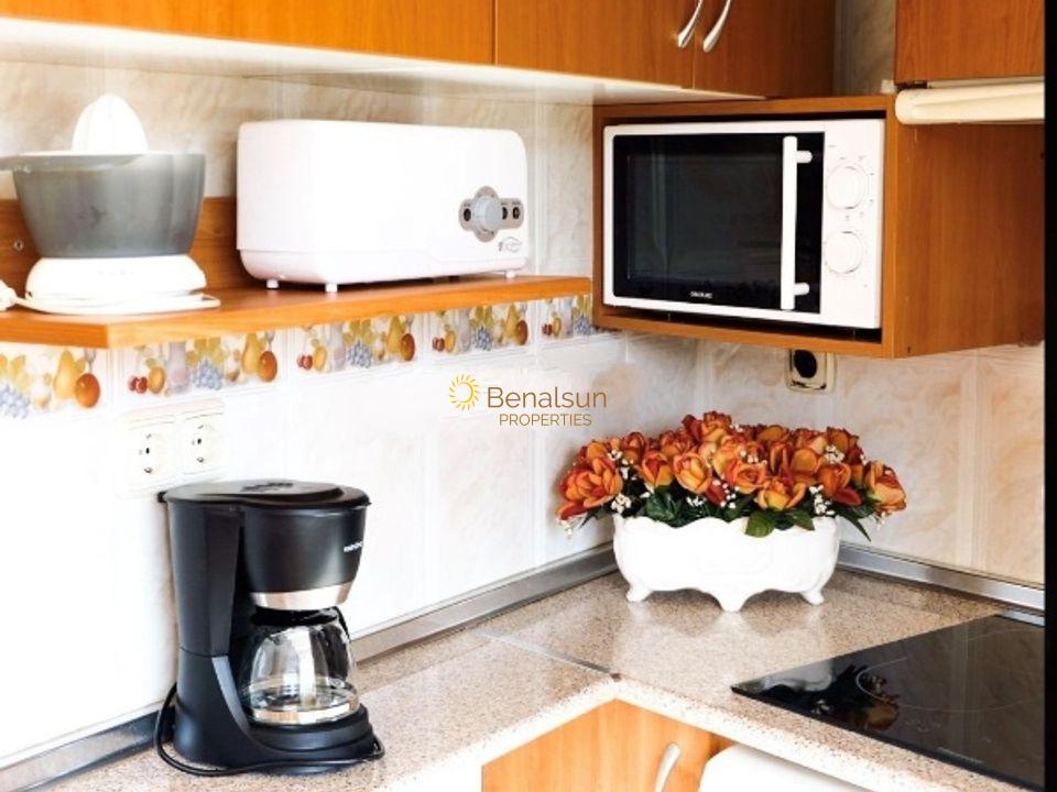 La vivienda consta de 1 salón con cocina americana , 1 baño con ducha y secador de pelo , 1 balcón . Totalmente reformado , decorado con mucho gusto . la urbanización cuenta con jardín y piscina y recepción al lado de todas las facilidades cruzas y estás en el paseo marítimo y en la playa , supermercados, farmacia , parada de bus , restaurantes, puerto marina, centro de salud.