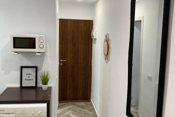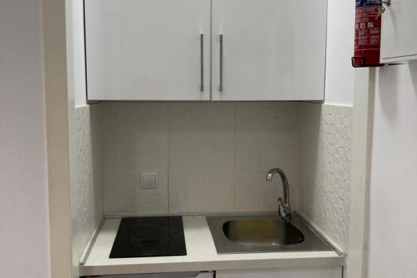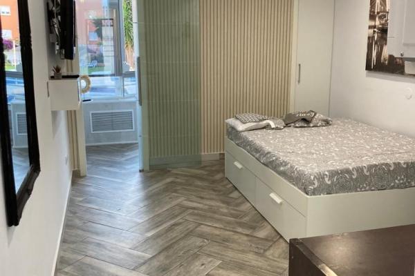 Estudio ubicado en planta baja, consta de salón con cocina americana equipada con placa vitrocerámica, microondas , lavadora , 1 cama de matrimonio , 1 baño.