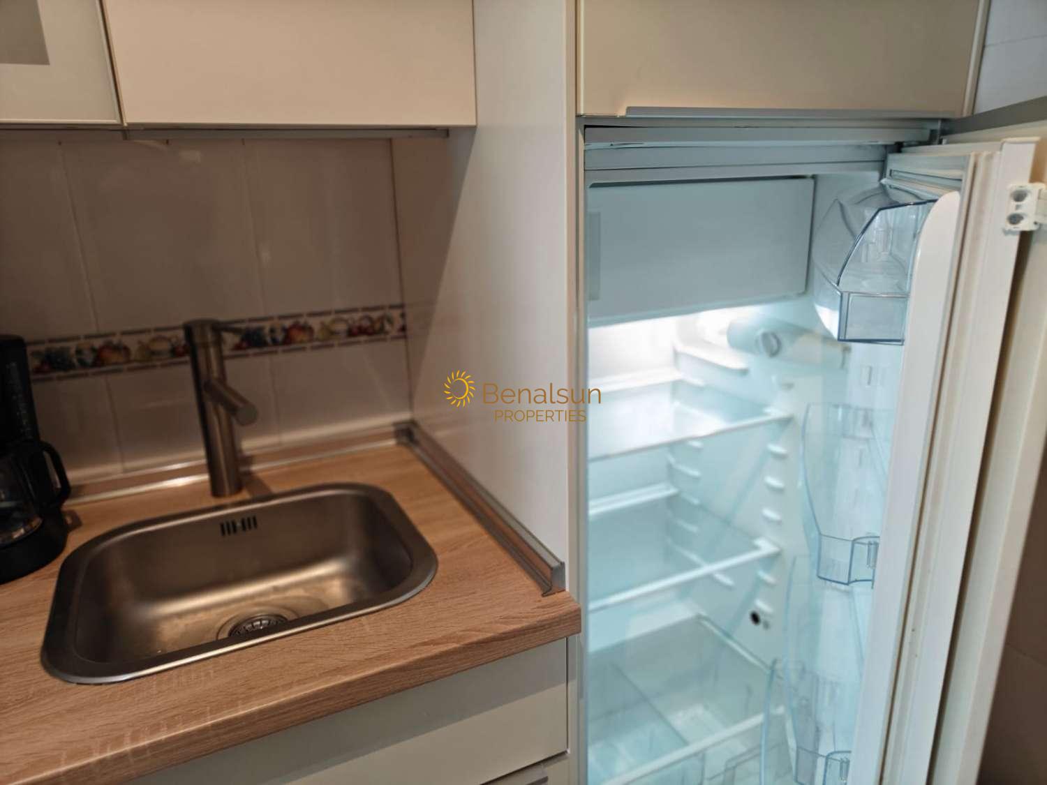 SE ALQUILA DESDE AHORA POR 10 MESES BONITO ESTUIDO A 150 METROS DE LA PLAYA EN LA CALA DE MIJAS TIENE 30,23M2CONSTRUIDOS 29,60M2 UTILES , 1ª PLANTA , ORIENTACION NORTE , AIRE ACONDICIONADO FRIO /CALOR . NO TIENE LAVADORA