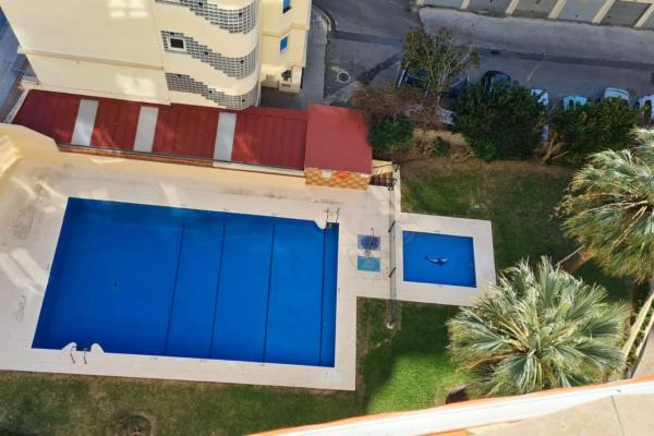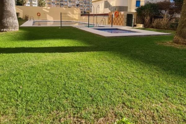 Conjunto con jardines y piscina . Cerca de todas las facilidades , a escasos metros de de la playa y del paseo marítimo , restaurantes , farmacia , parada de bus . Ideal para una persona sola o una pareja .