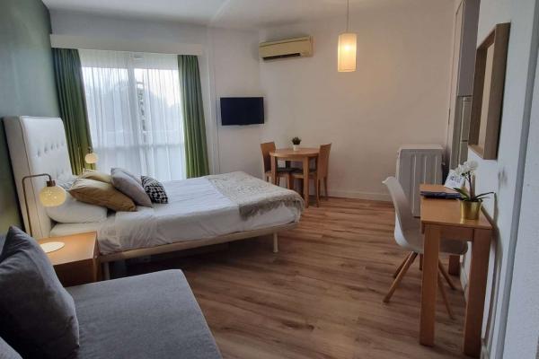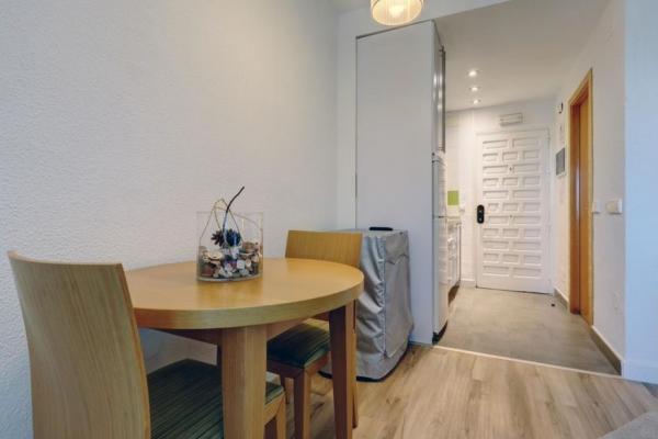 La vivienda consta de salón /dormitorio con cocina americana gran horno , microondas , Smart TV 42" , lavadora .