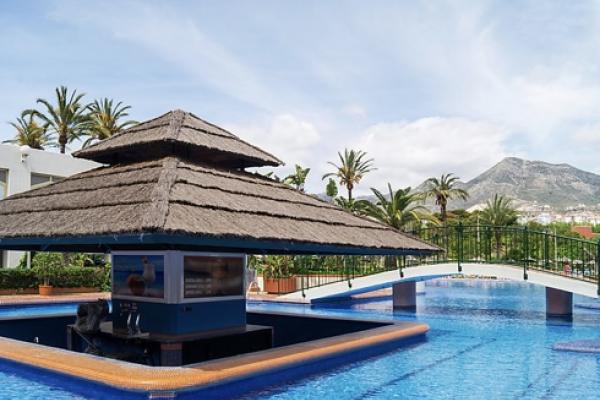 Situado en uno de los complejos más demandados , cuenta con recepción 24 horas , gimnasio , spa , 10 .000 metros de jardines con lagos y piscinas con toboganes , al lado del Parque de la Paloma , playa enfrente , supermercados , farmacia , paseo marítimo , restaurantes , parada de bus y de taxi .