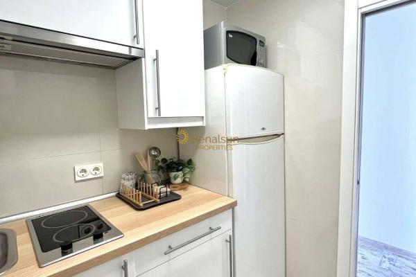 La vivienda consta de un luminoso salón con cama doble y sofá cama con posibilidad de ropa de cama extra , armario empotrado, persiana eléctrica, cocina independiente totalmente equipada (microondas, nevera, etc), 1 baño con ducha y terraza acristalada muy luminosa integrada al salón.