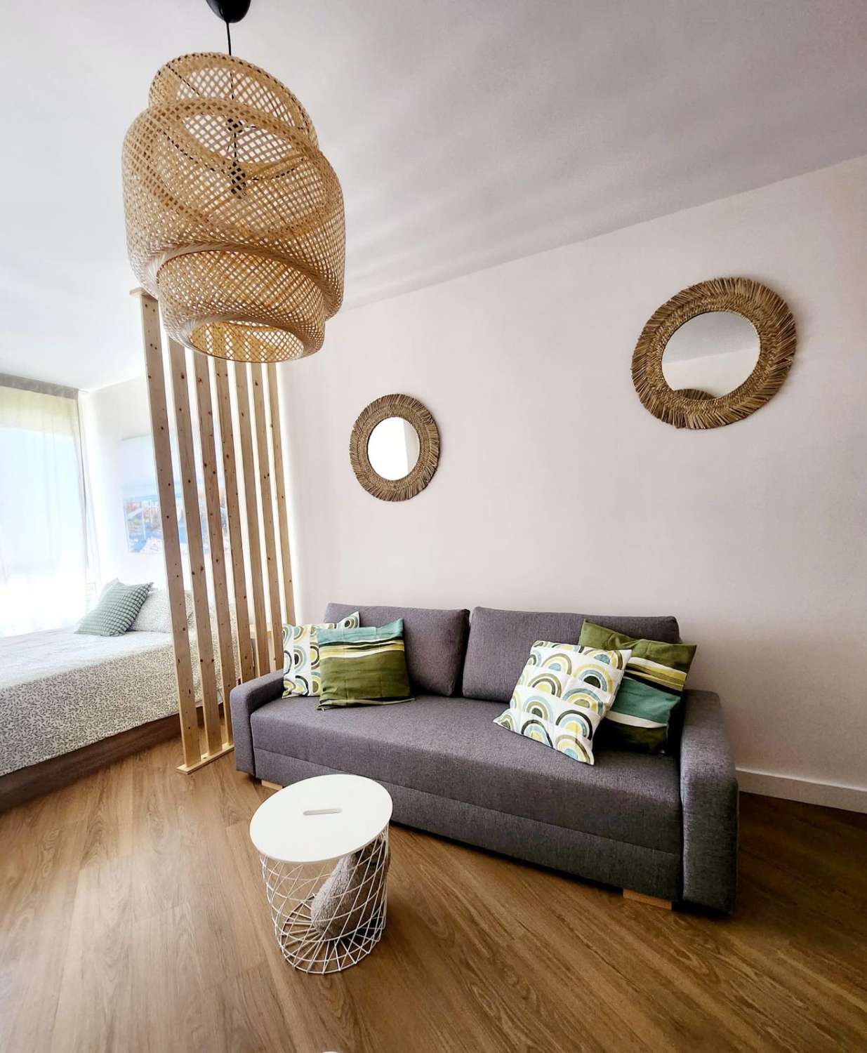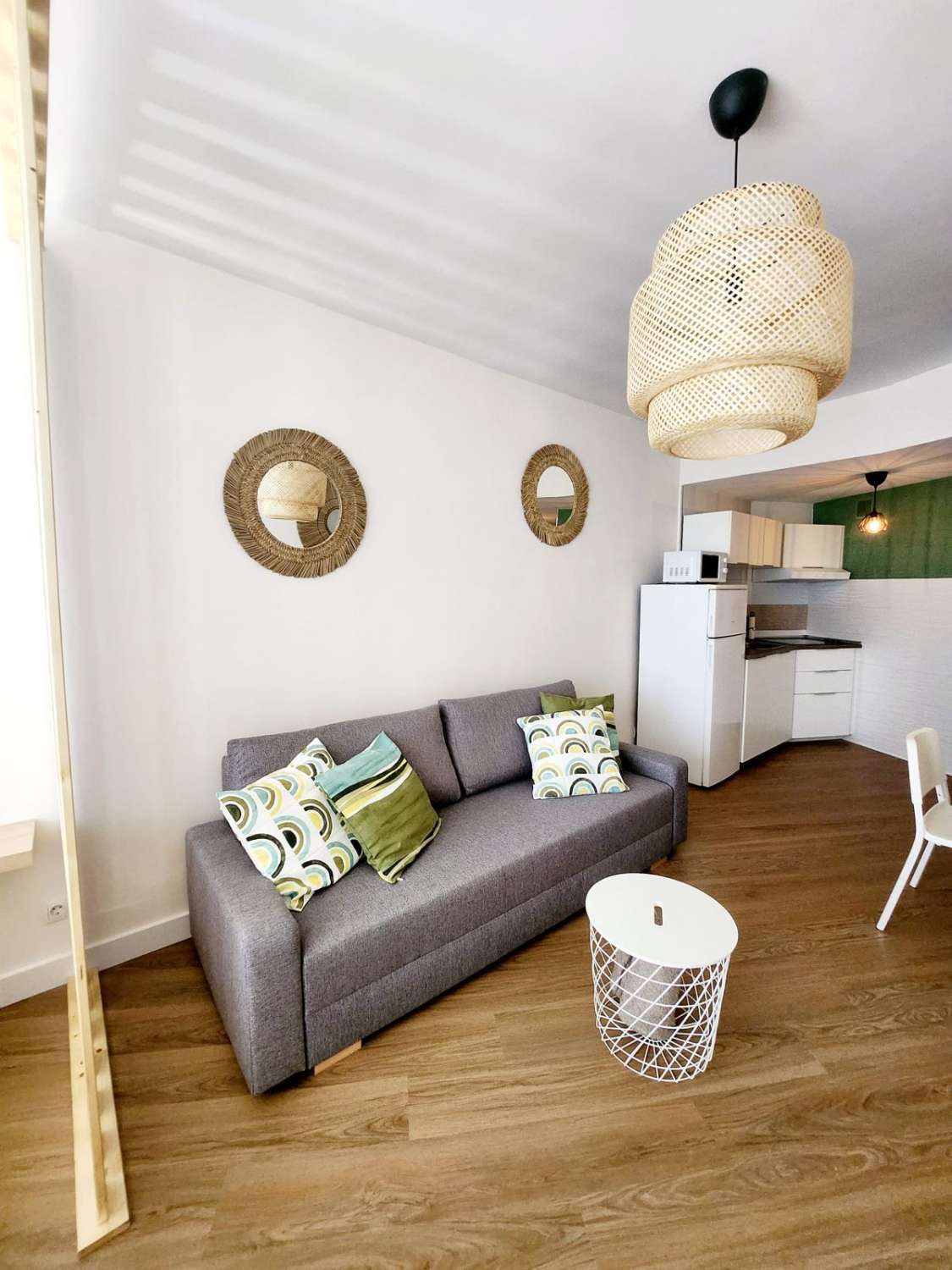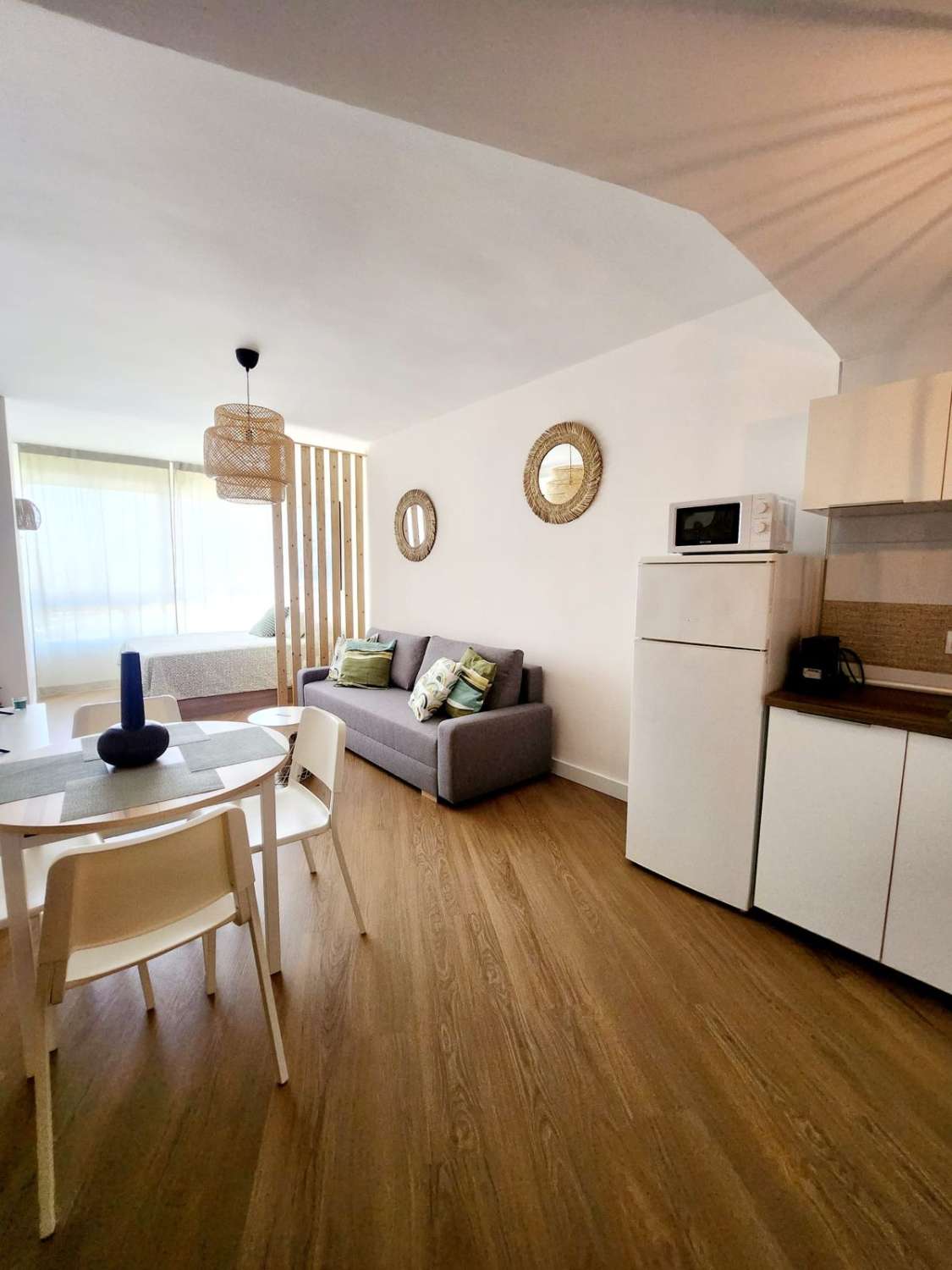 La vivienda consta de salon /comedor con cama de 1.50 cm y sofa cama de 1,35 , cocina americana equipada 1 baño, recien reformado .
