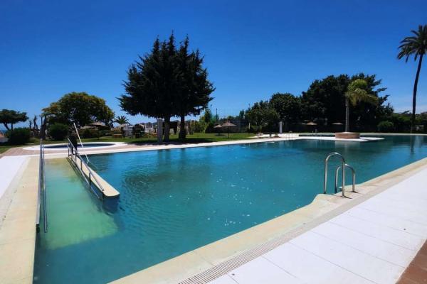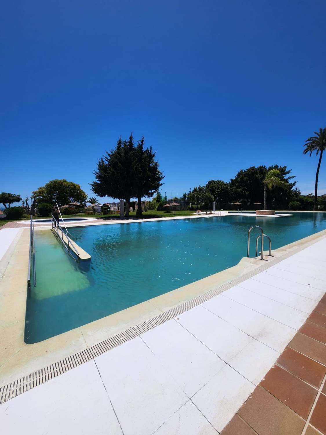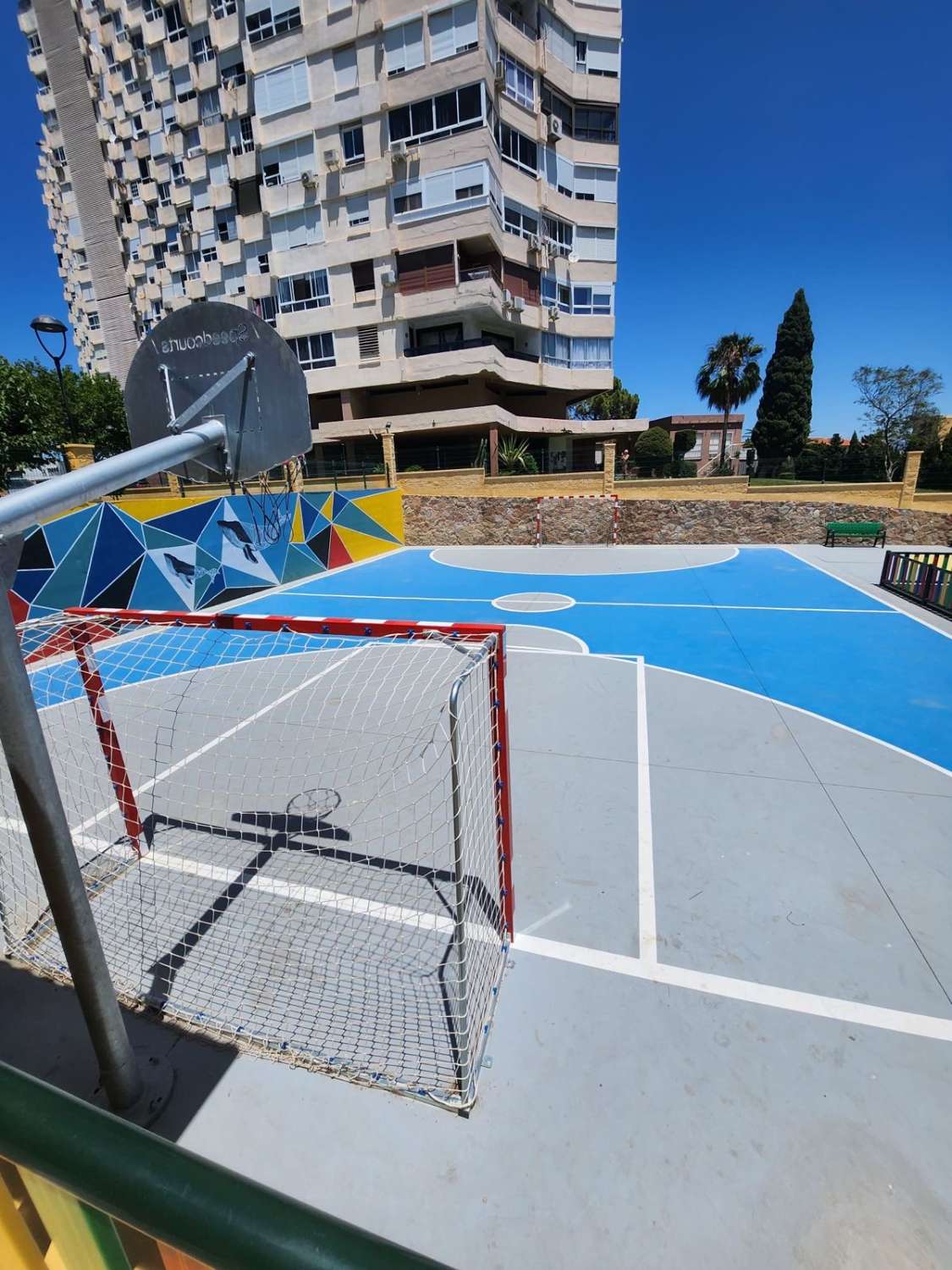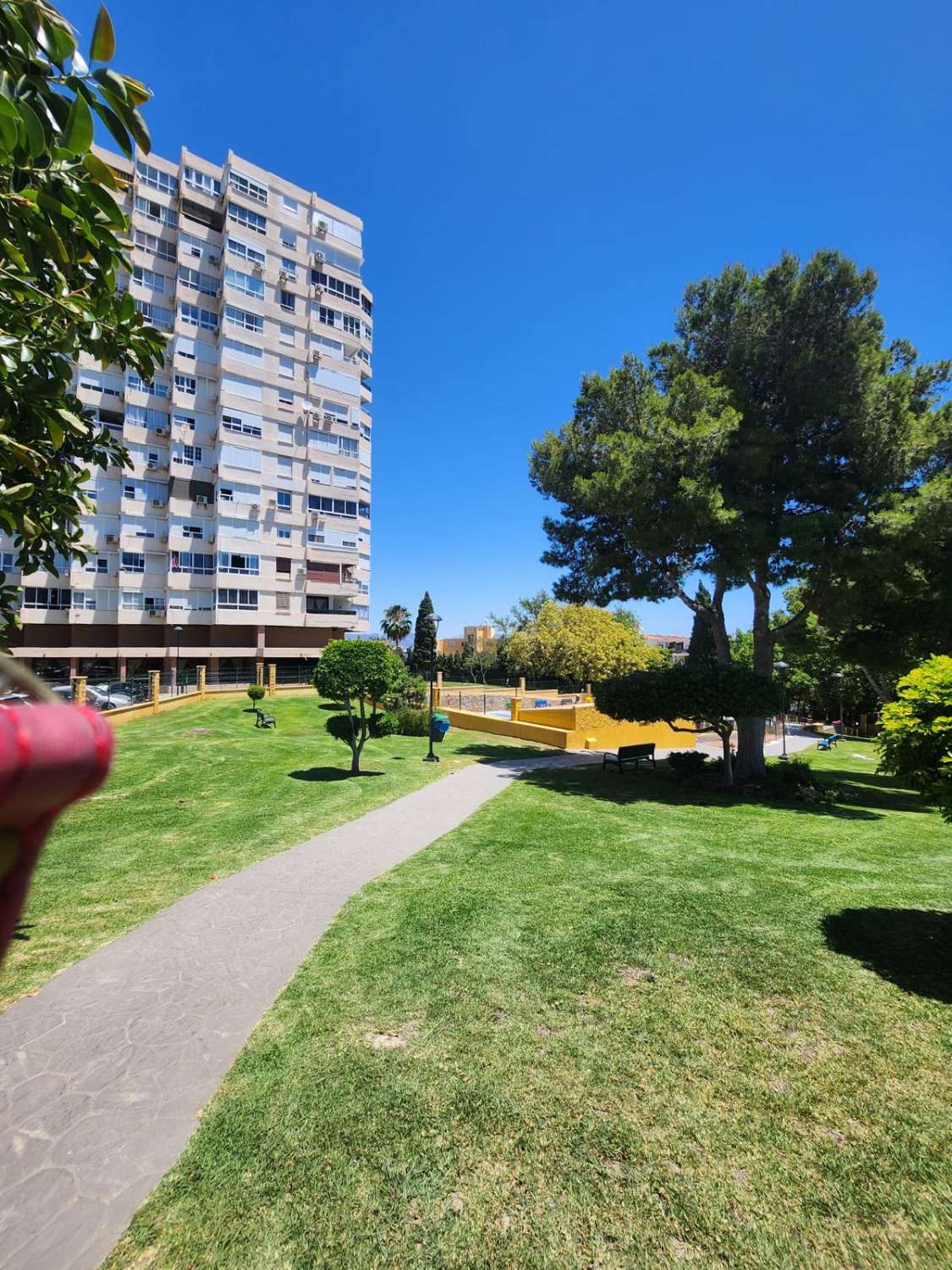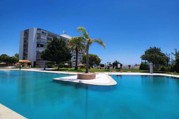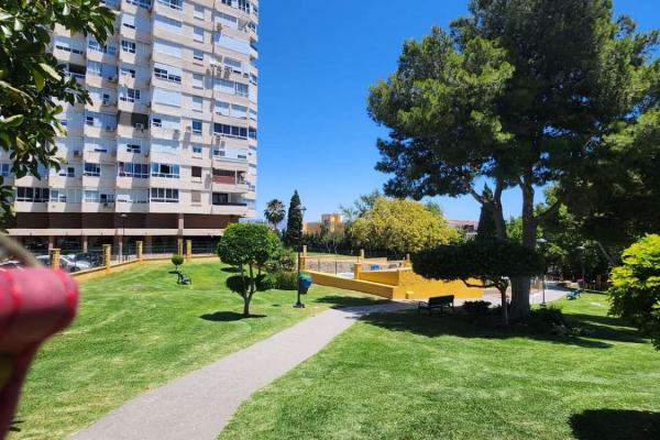 Situado en una urbanización tranquila con zonas verdes , piscina , parque infantil , pista de padel , restaurante, peluqueria . A 350 metros de la estación de cercanías de la La Colina , farmacia , parada de bus , restaurantes y cerca de la playa