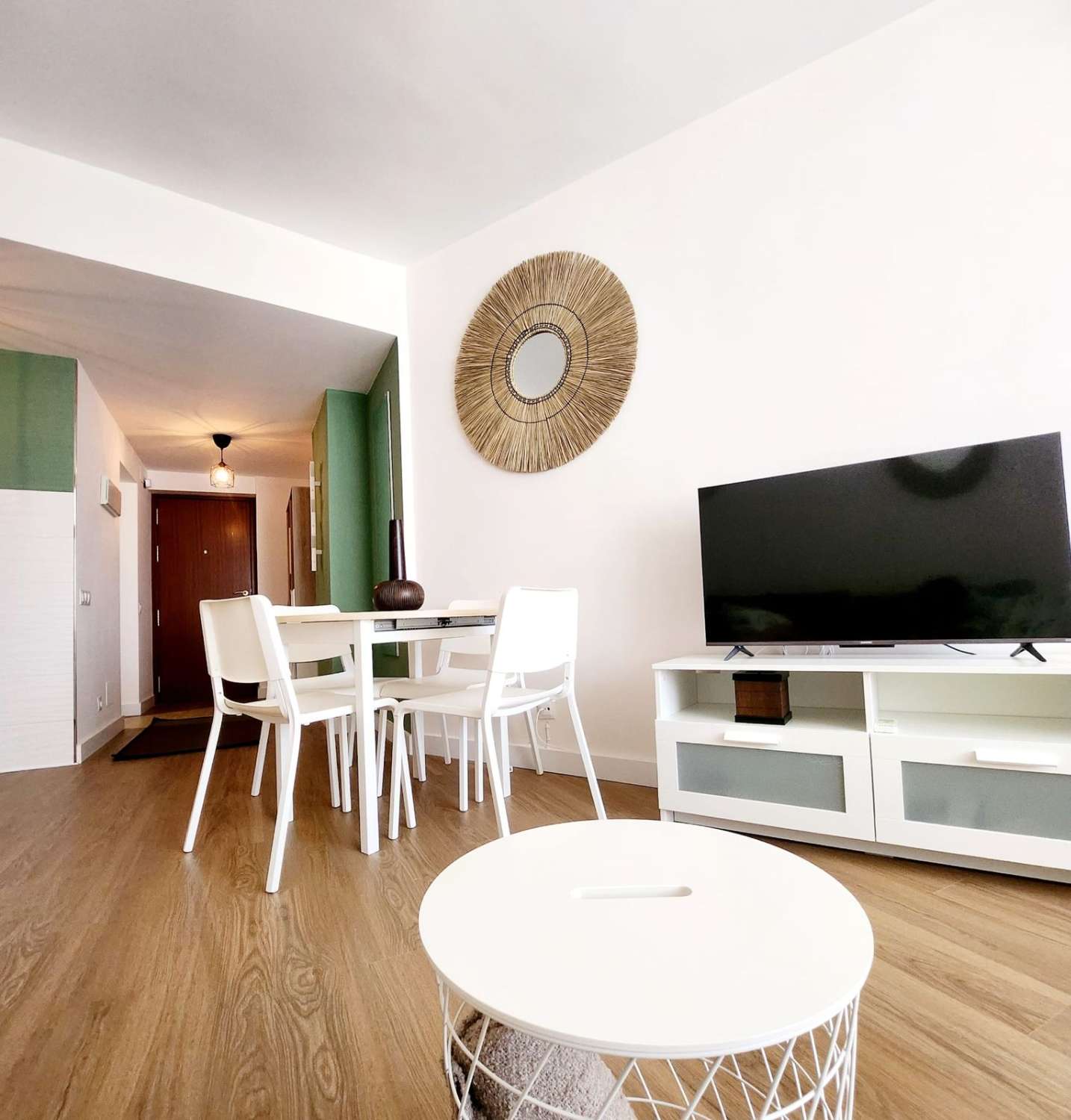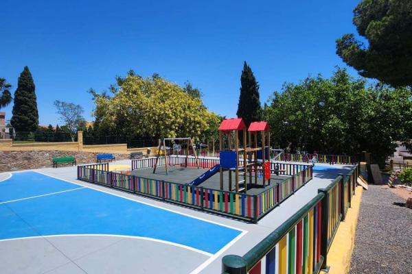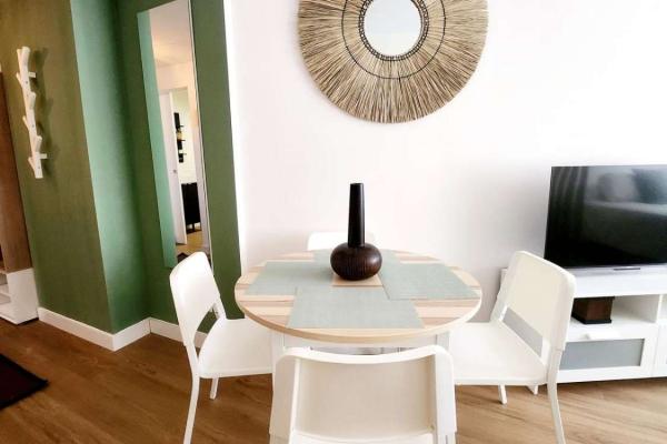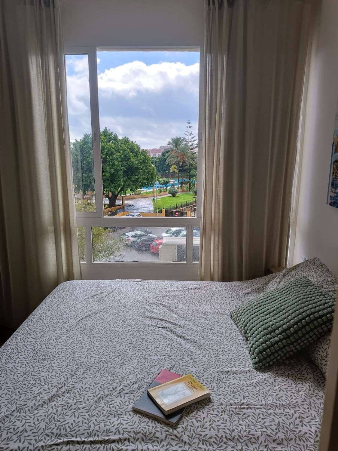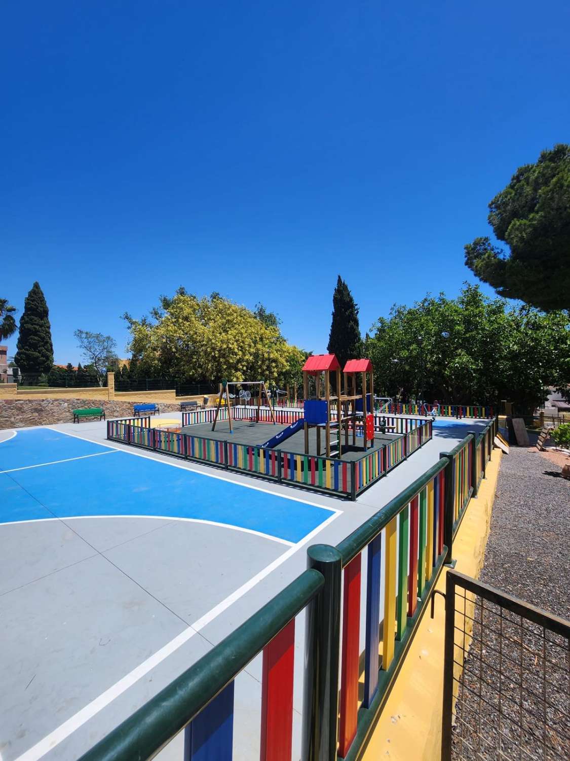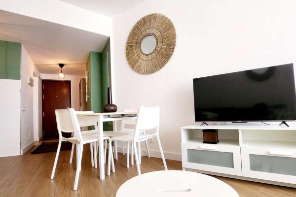 Situado en una urbanización tranquila con zonas verdes , piscina , parque infantil , pista de padel , restaurante, peluqueria . A 350 metros de la estación de cercanías de la La Colina , farmacia , parada de bus , restaurantes y cerca de la playa