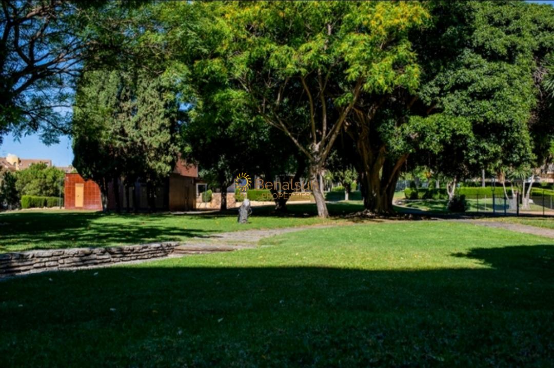 La vivienda consta de salón con cocina americana , 1 baño y terraza con espectaculares vistas al mar . Conjunto con jardin y piscina , servicio de recepción 24 horas , adaptado para personas con movilidad reducida . a 5 minutos andando del centro de Arroyo de la Miel (estación de tren) , a 10 minutos andando a la playa . Cerca del Parque de la Paloma , todas las facilidades como restaurantes , comercios , gimnasio con piscina y pista de hielo , supermercados , farmacia a 2 minutos andando .